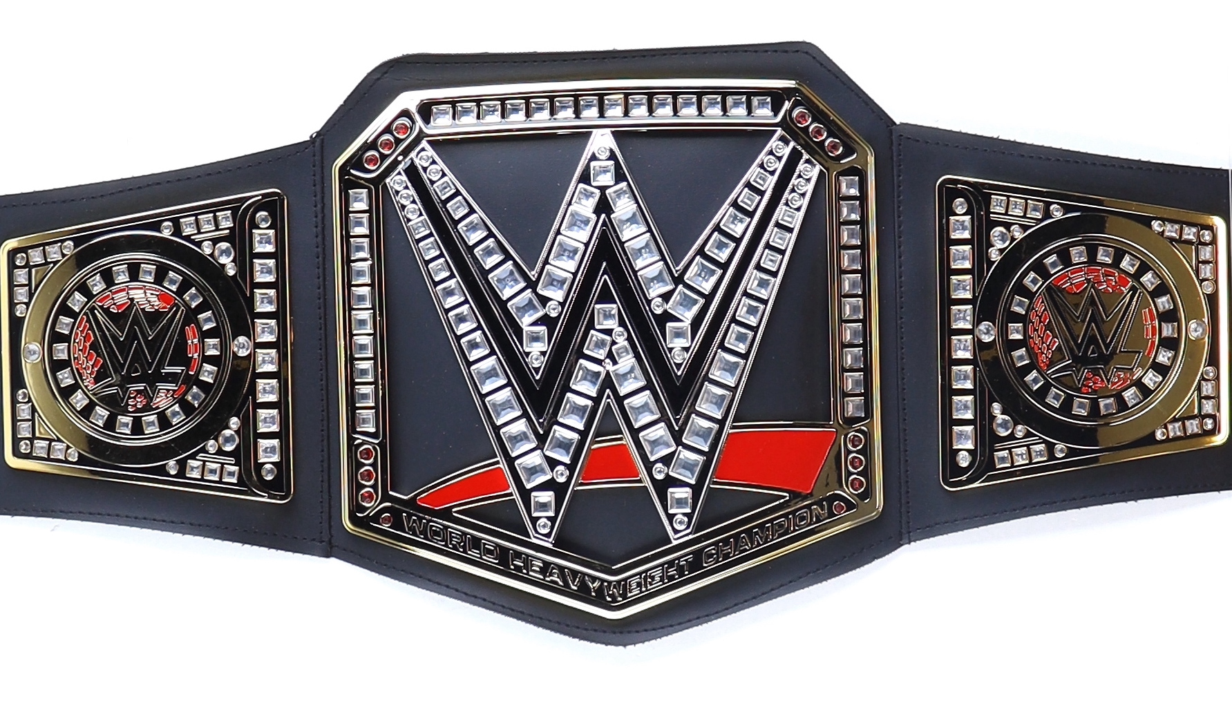 WWE plastic toy replica championship belt. Measures approximately 39" in length. Hand-signed and inscribed by Ricky "The Dragon" Steamboat (HOF), Jimmy Hart (HOF), Greg Valentine (HOF), Brutus Beefcake (HOF). Please note the straps are very bent.