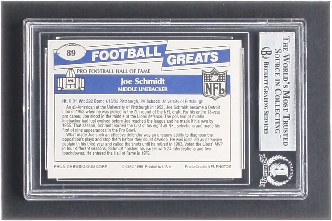 Joe Schmidt Signed 1989 Swell Greats #89 (BGS)