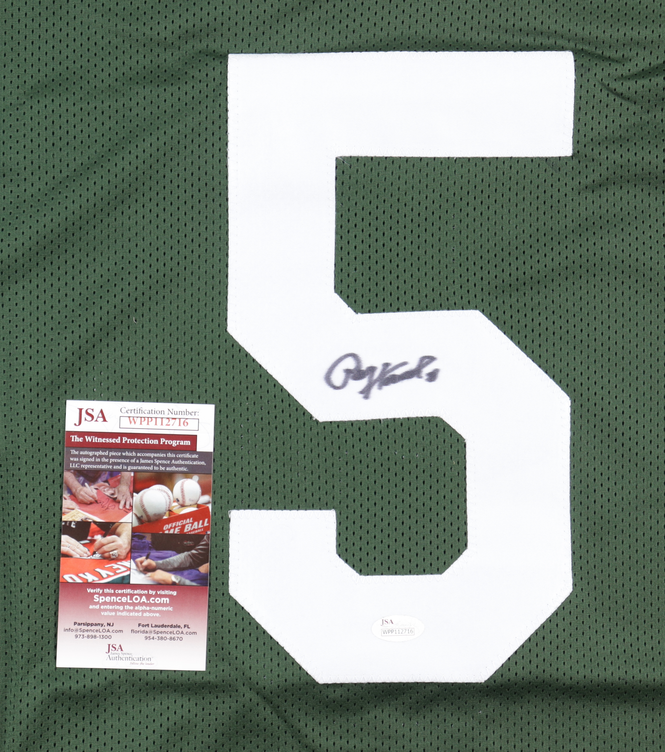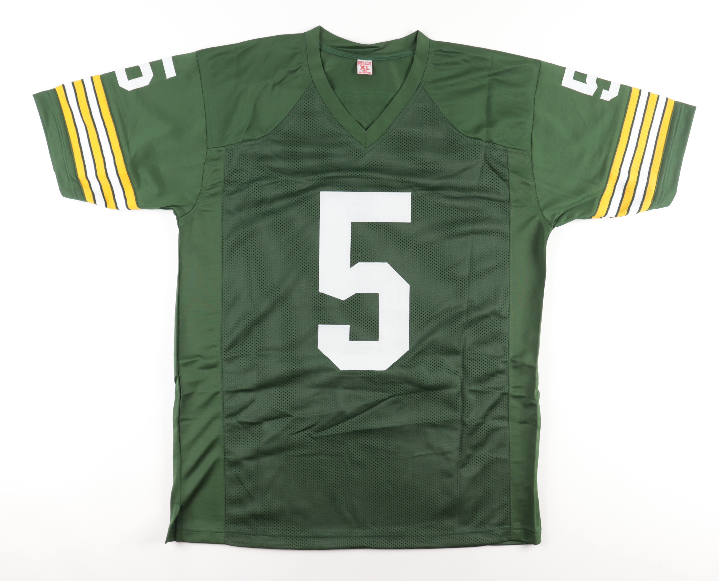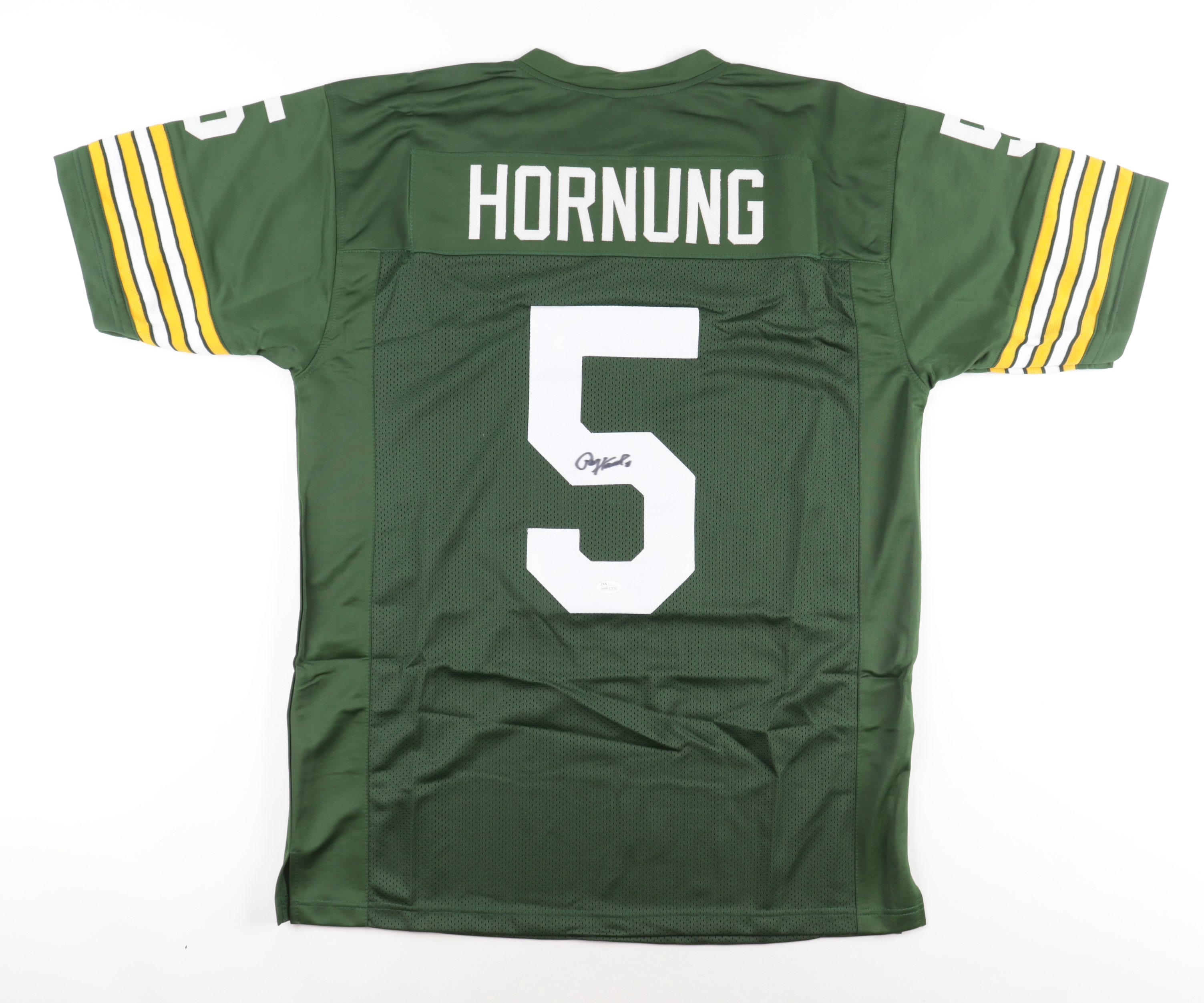 Custom jersey with everything sewn on, size XL. Hand-signed by Paul Hornung (D. 2020, HOF).