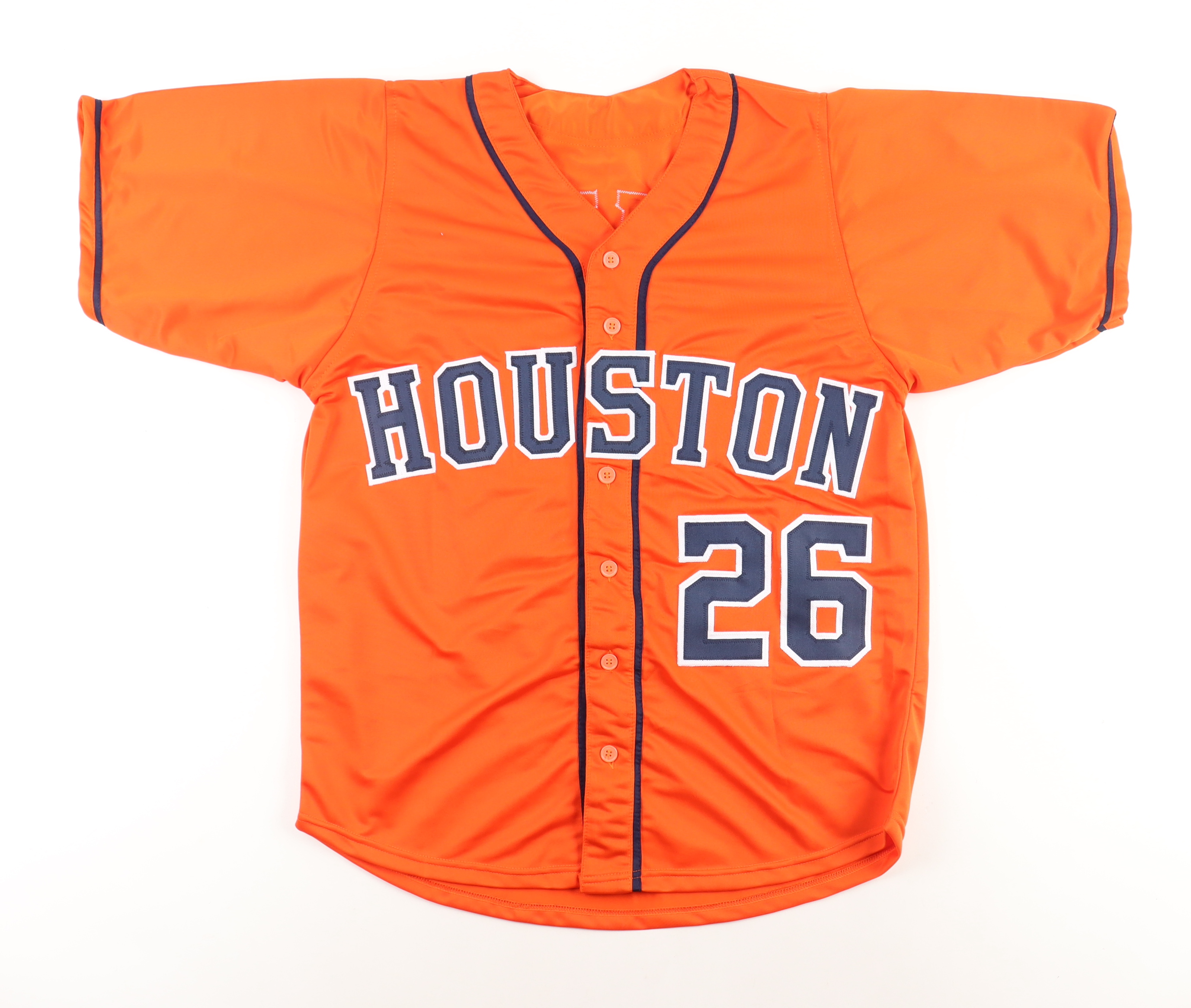 Custom jersey. Everything is sewn on, size XL. Hand-signed by Jose Siri.