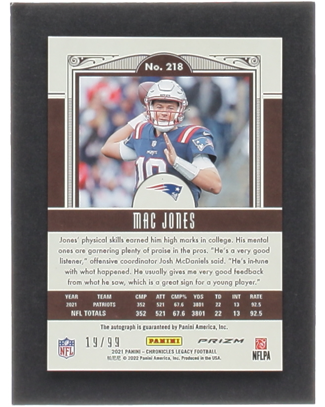 Mac Jones 2021 Panini Chronicles Legacy Update Rookies Signatures #218 RC #19/99