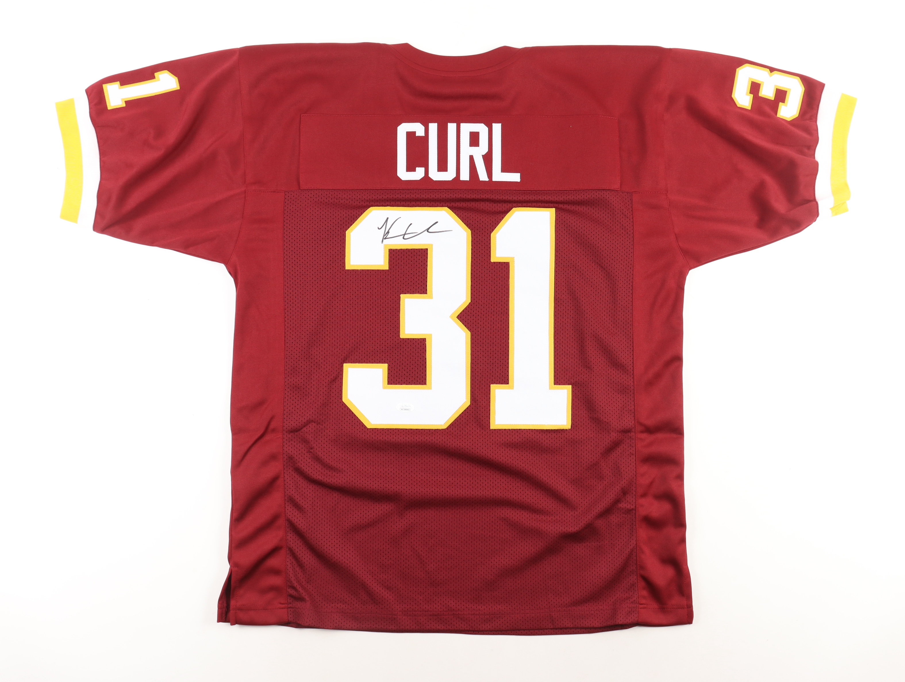 Custom jersey with everything sewn on, size L. Hand-signed by Kamren Curl.