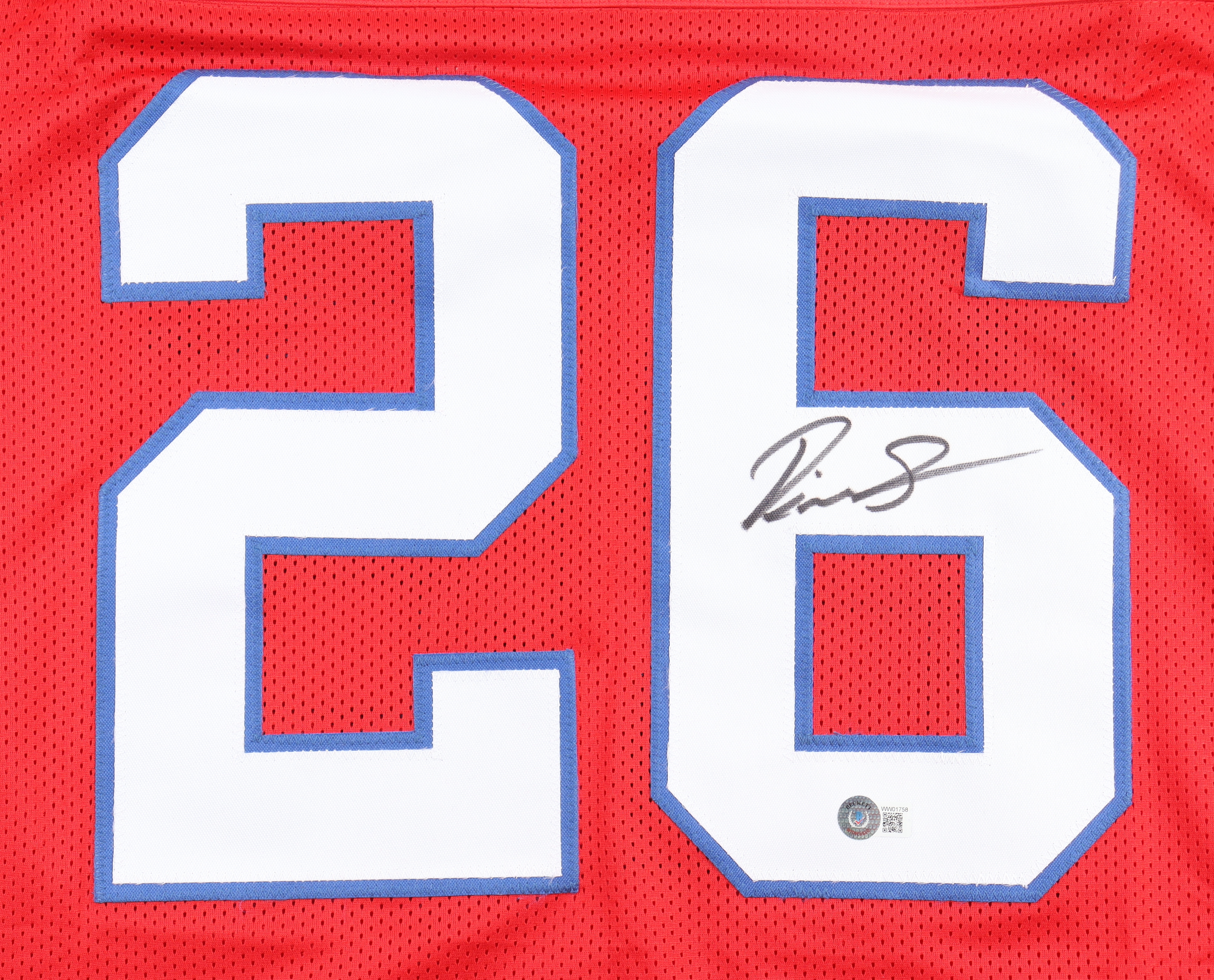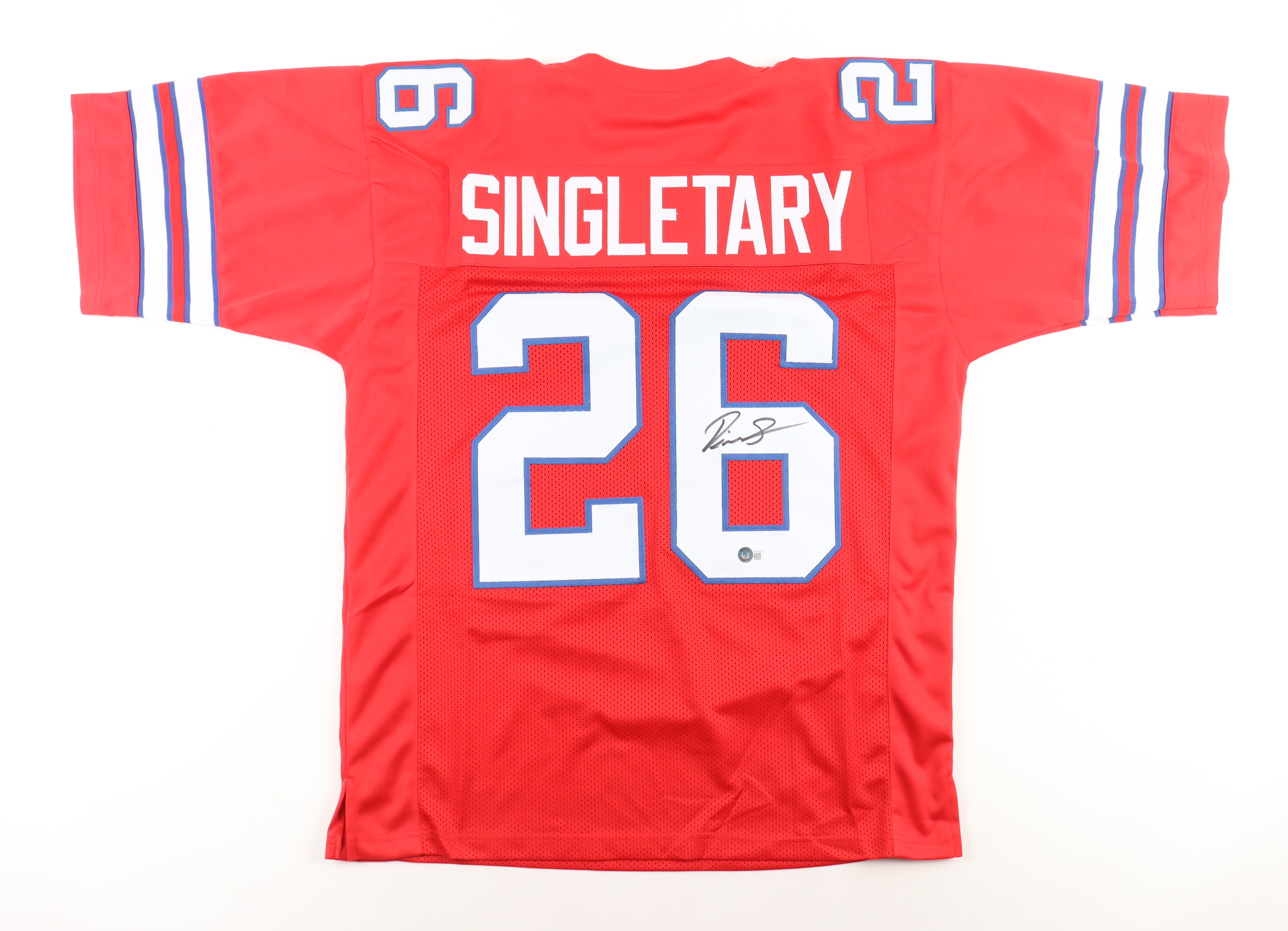 Custom jersey with everything sewn on, size XL. Hand-signed by Devin Singletary.
