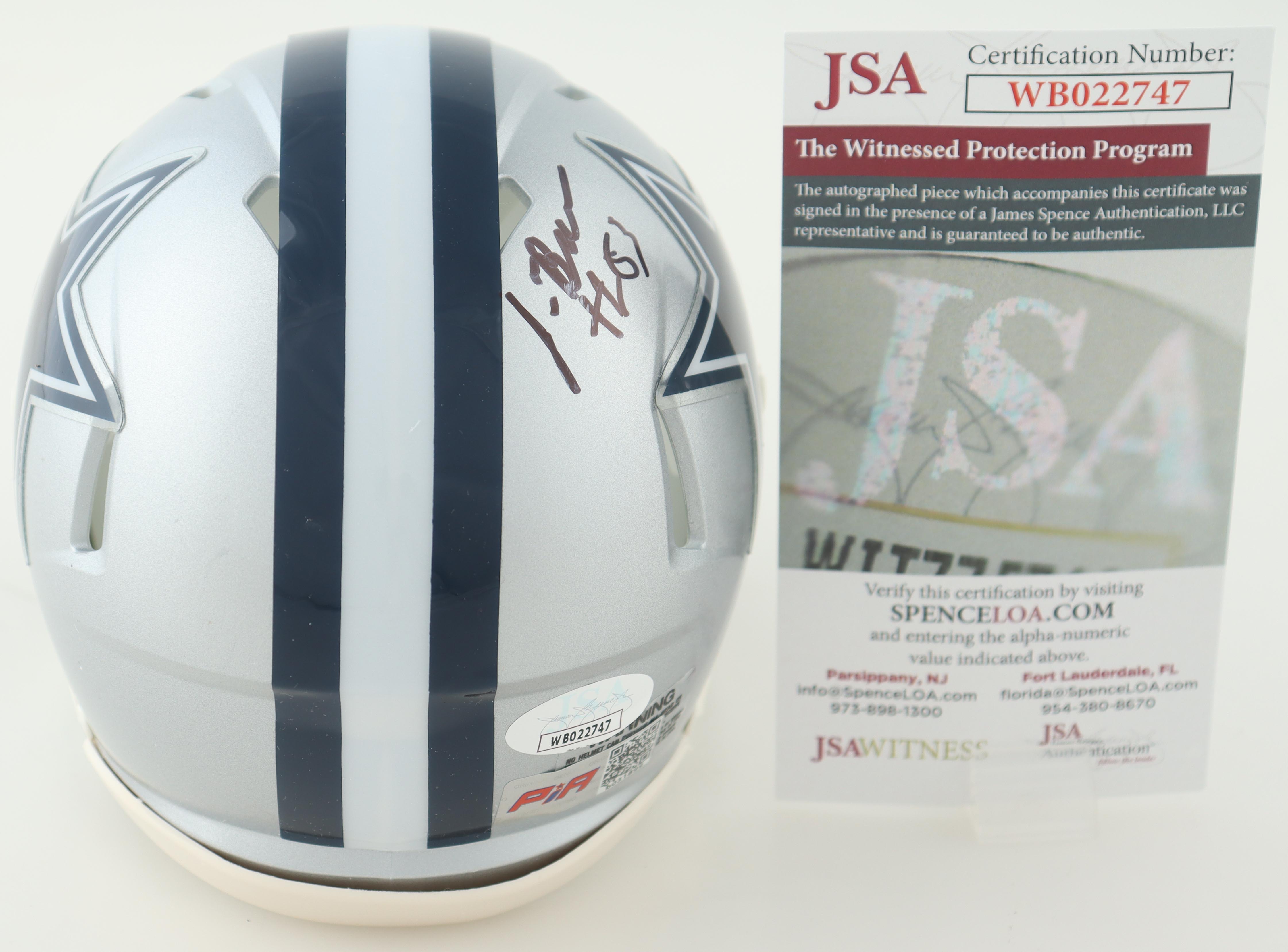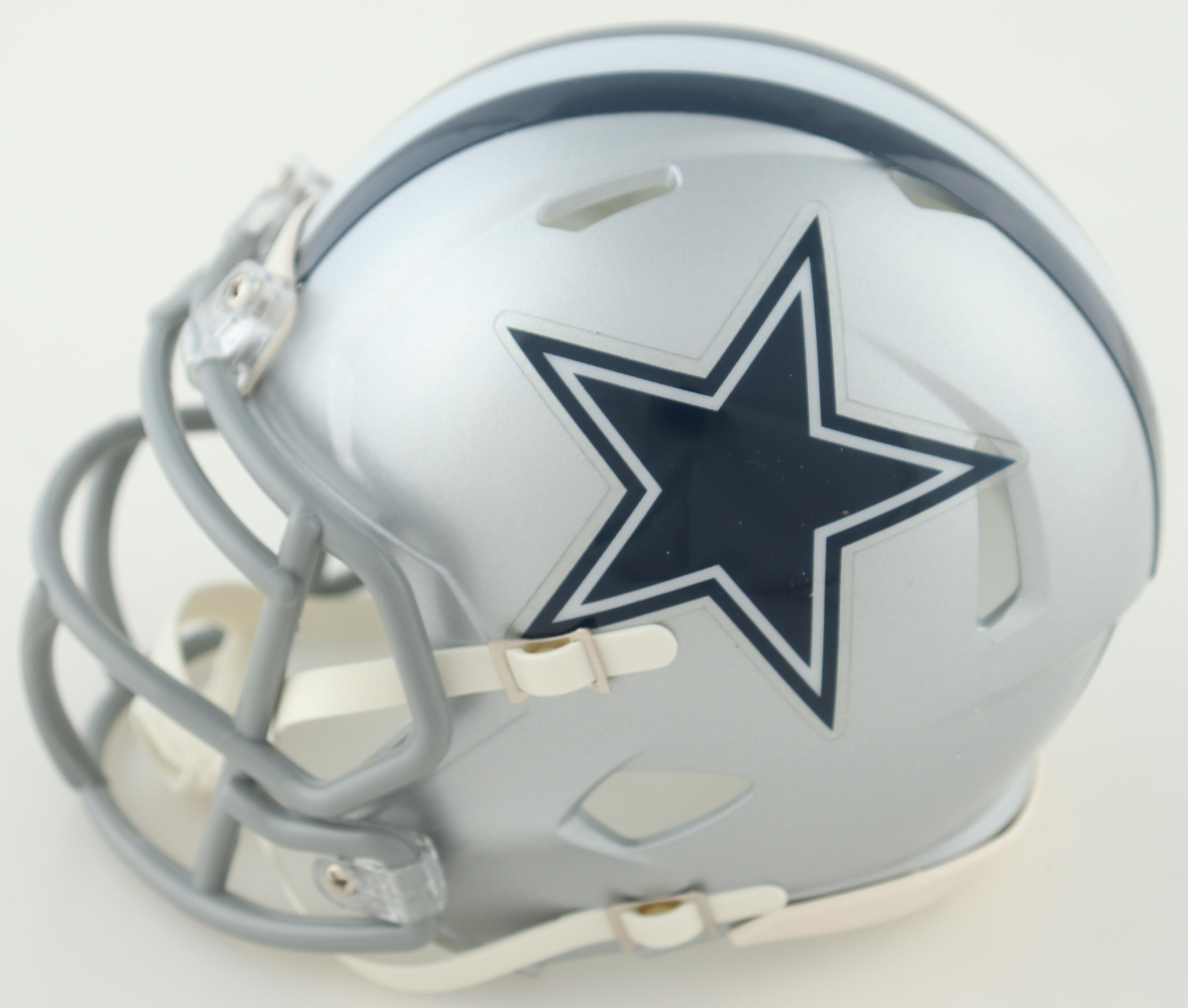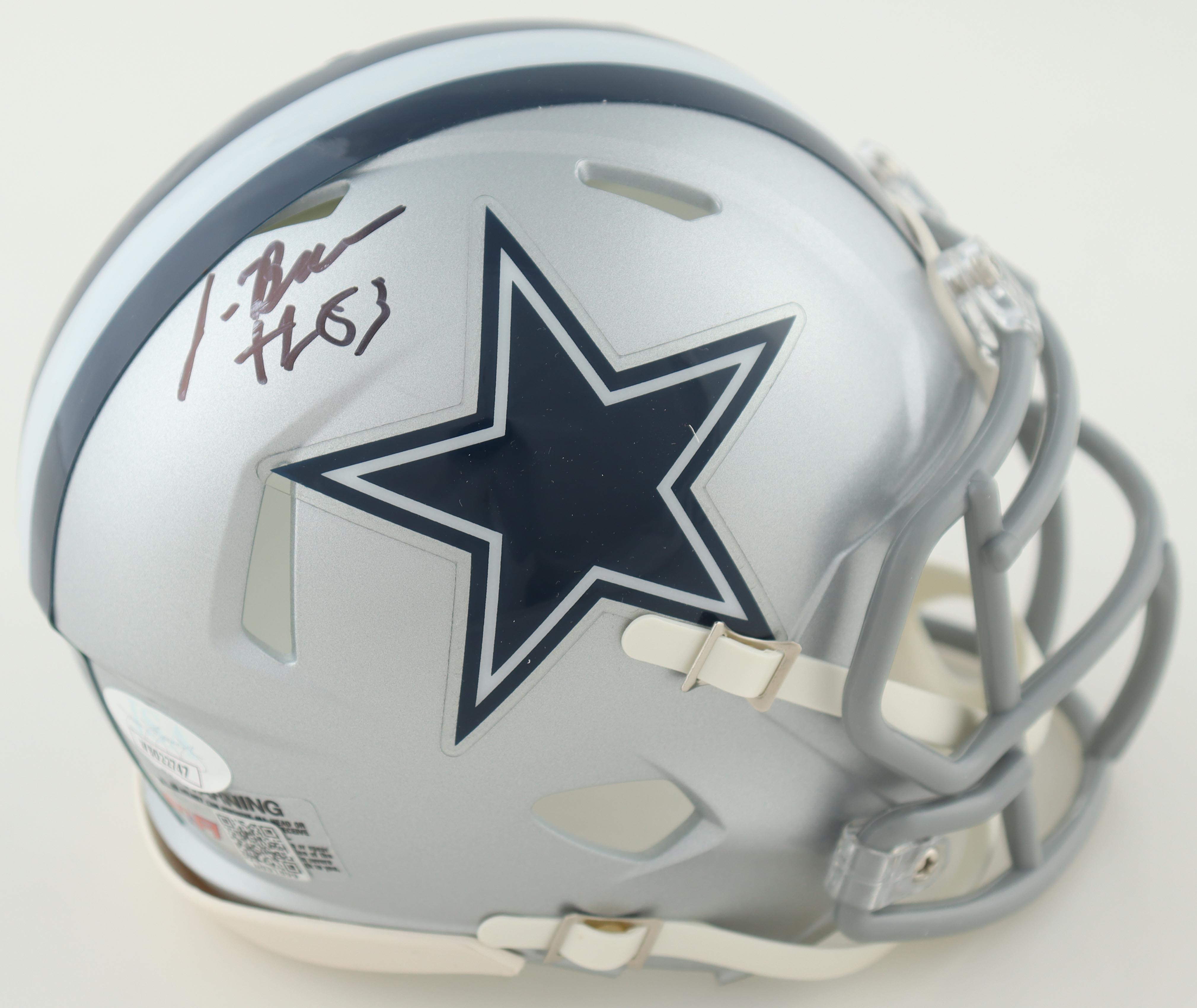 Riddell Dallas Cowboys throwback speed mini helmet. Has been hand-signed by Jalen Brooks.