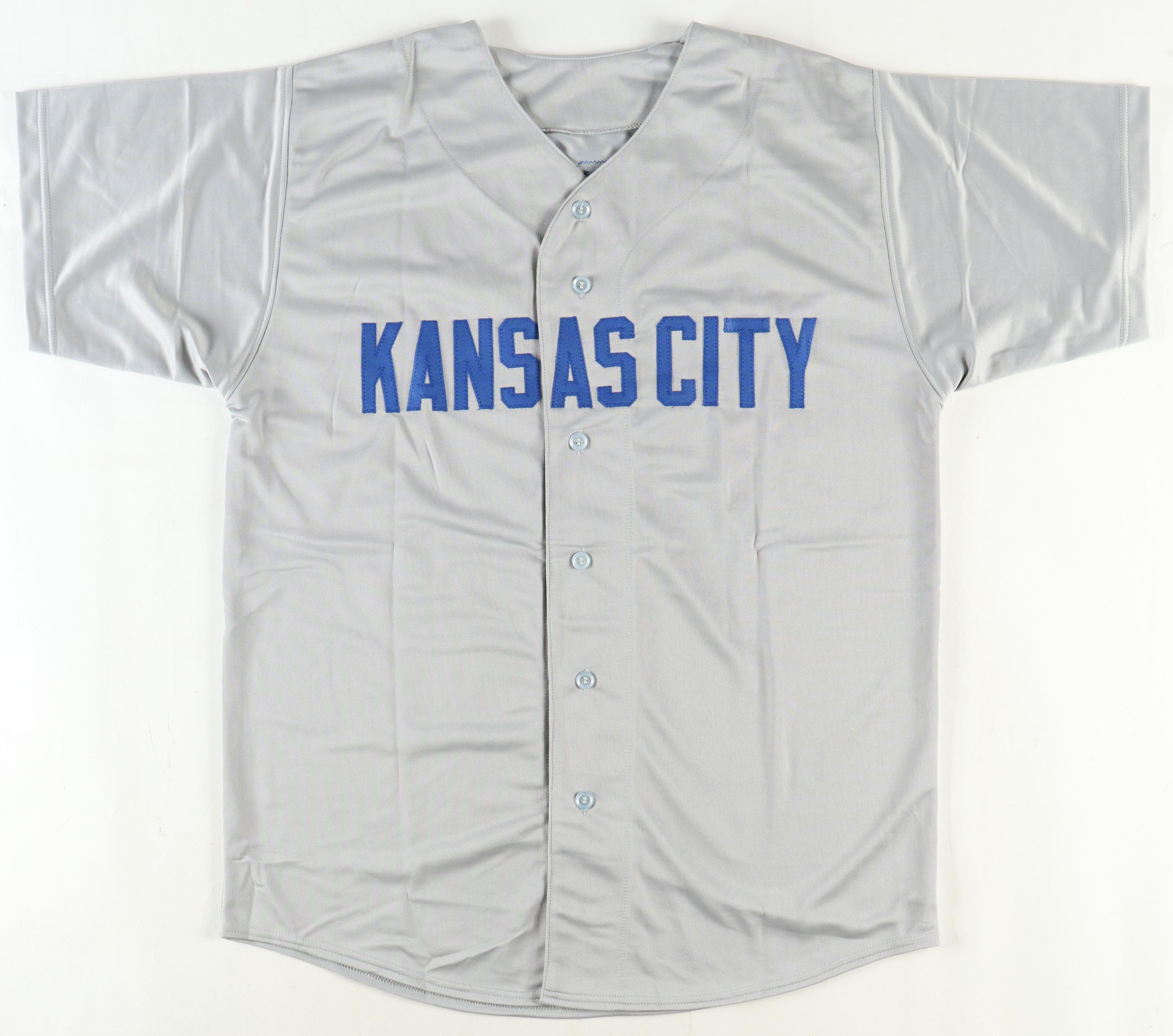 Custom jersey with everything sewn on, size XL. Hand-signed by Salvador Perez.