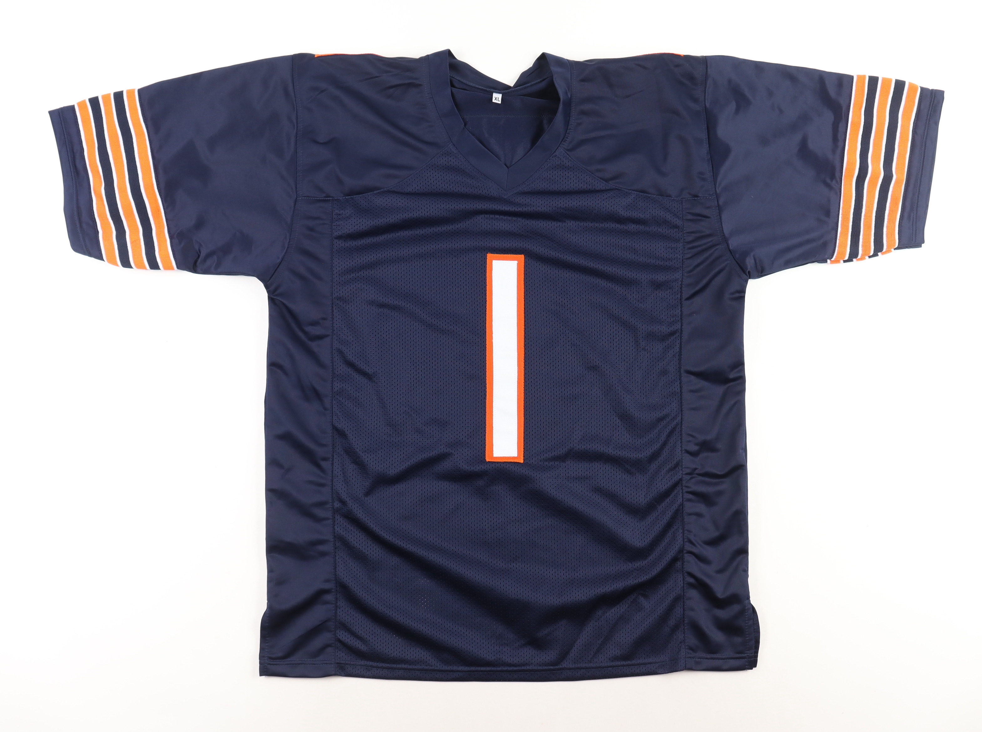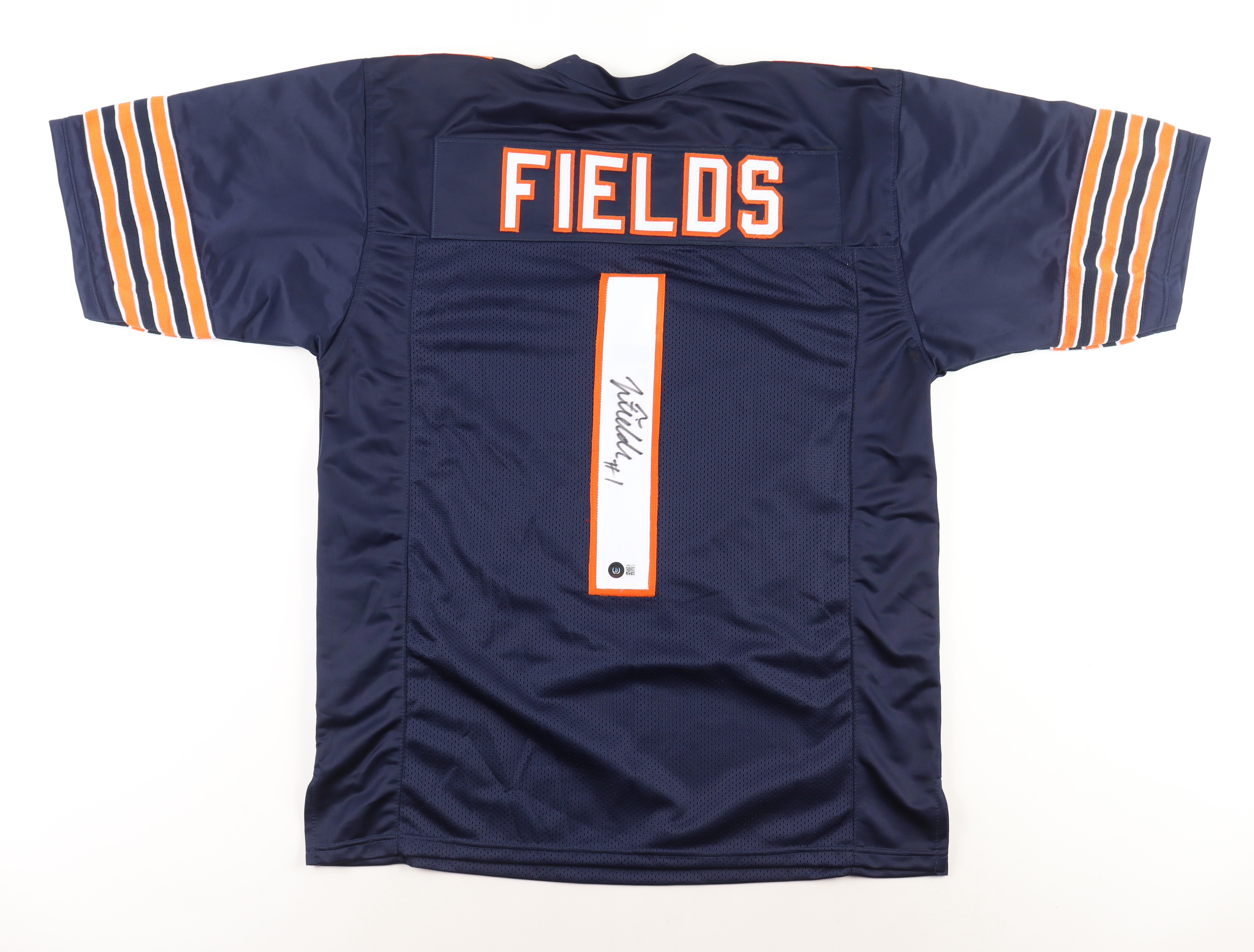 Custom jersey with everything sewn on, size XL. Hand-signed by Justin Fields.