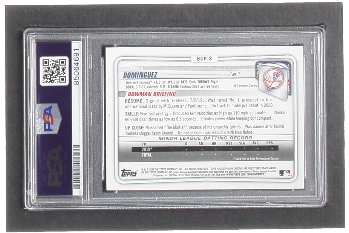 Jasson Dominguez Signed 2020 Bowman Chrome Prospects #BCP8 RC (PSA)