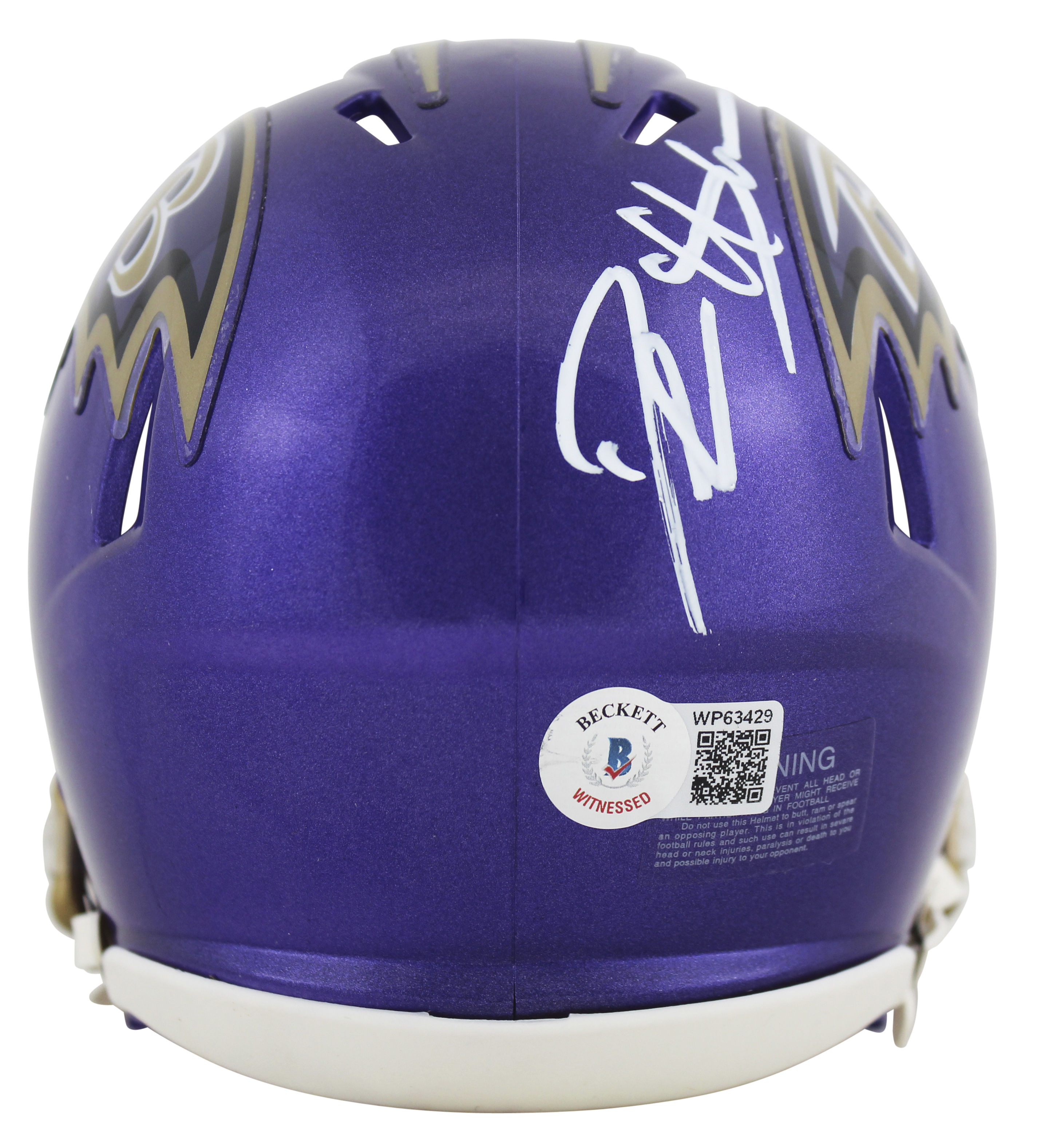 Riddell Baltimore Ravens flash alternate speed mini helmet. Hand-signed by Deion Sanders (HOF).