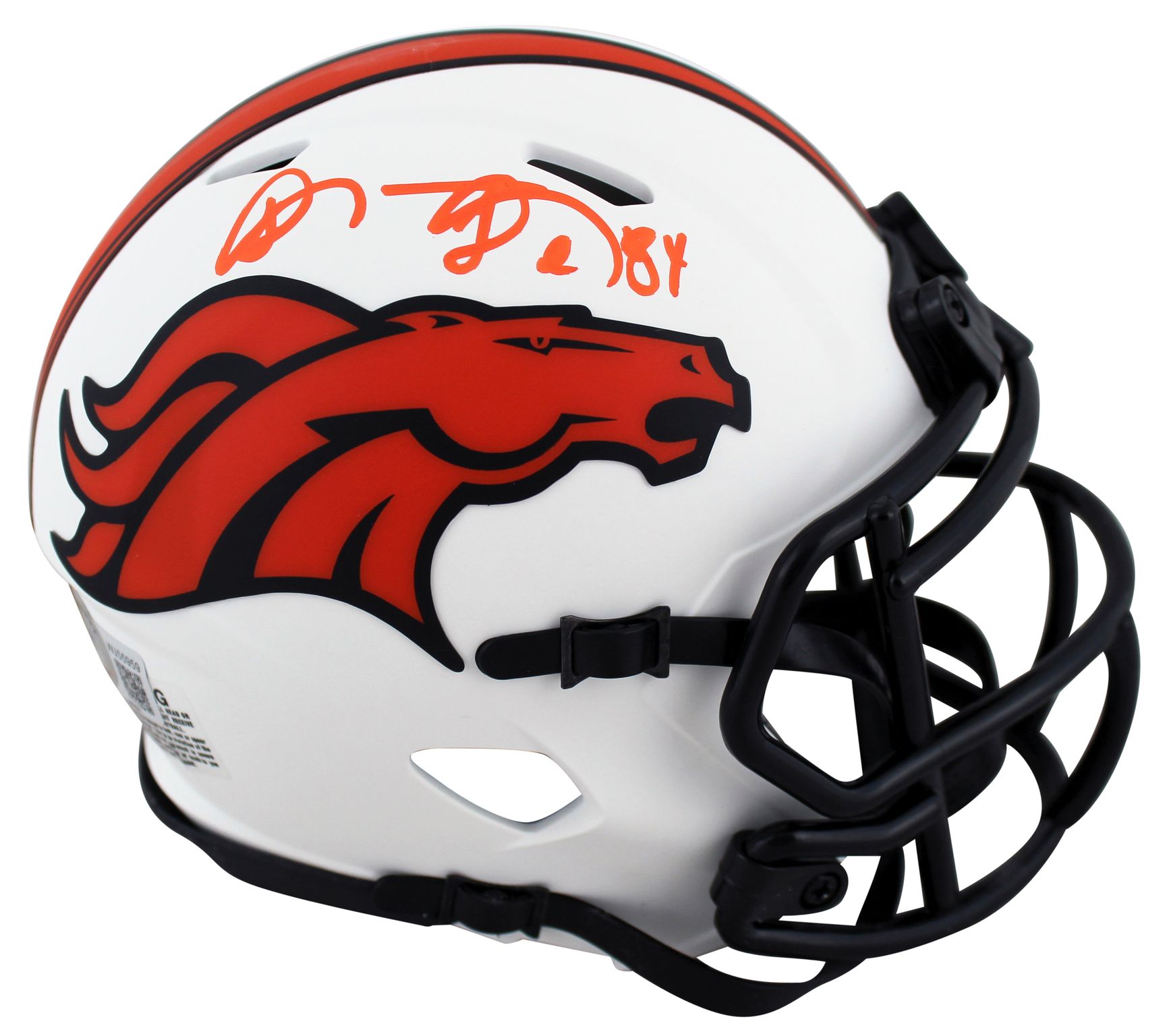 Riddell Denver Broncos lunar eclipse alternate speed mini helmet. Hand-signed by Shannon Sharpe (HOF).