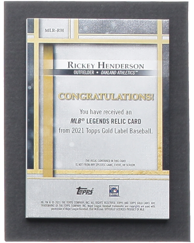 Rickey Henderson 2021 Topps Gold Label Legends Relics #MLRRH #13/50