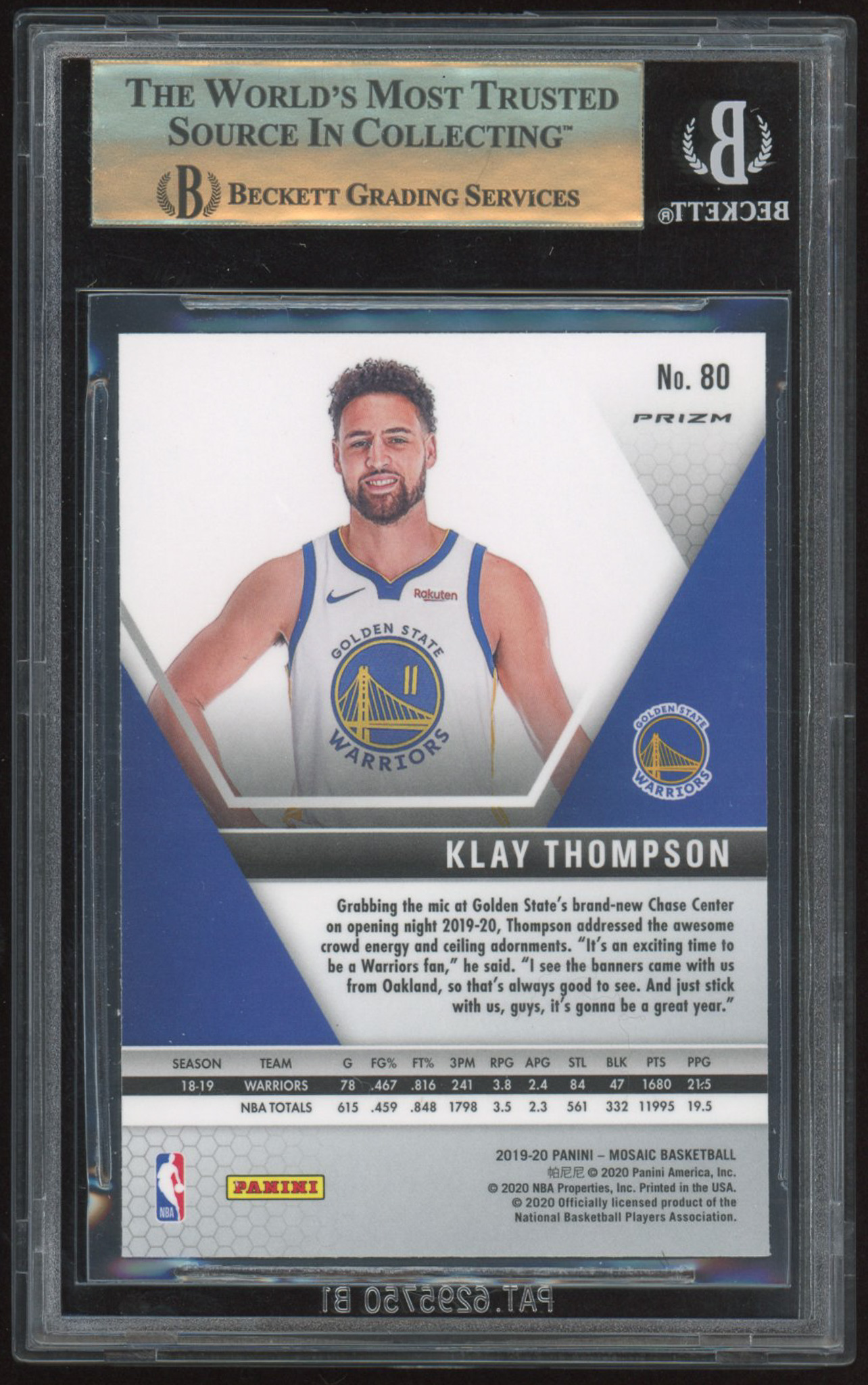 Klay Thompson 2019-20 Panini Mosaic Mosaic Genesis #80 (BGS 9.5)