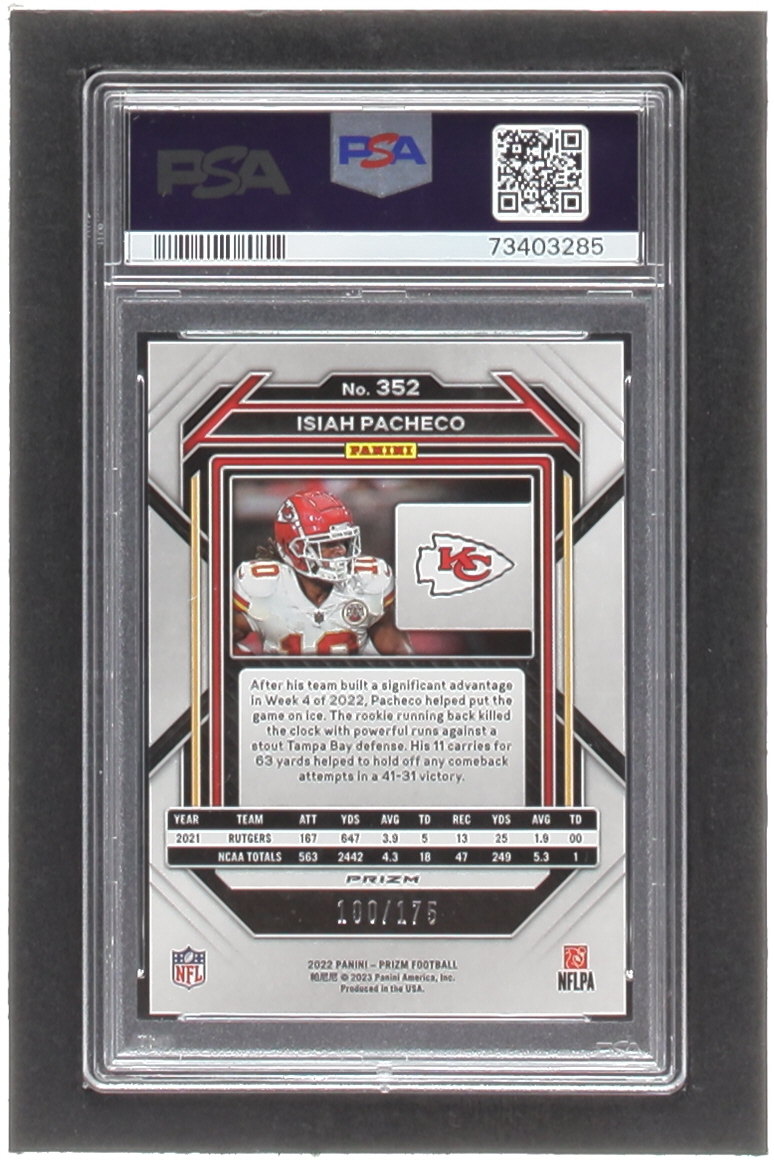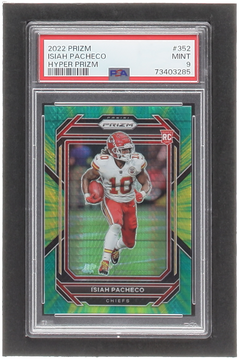 Isiah Pacheco 2022 Panini Prizm Prizms Hyper #352 RC #100/175 (PSA 9)