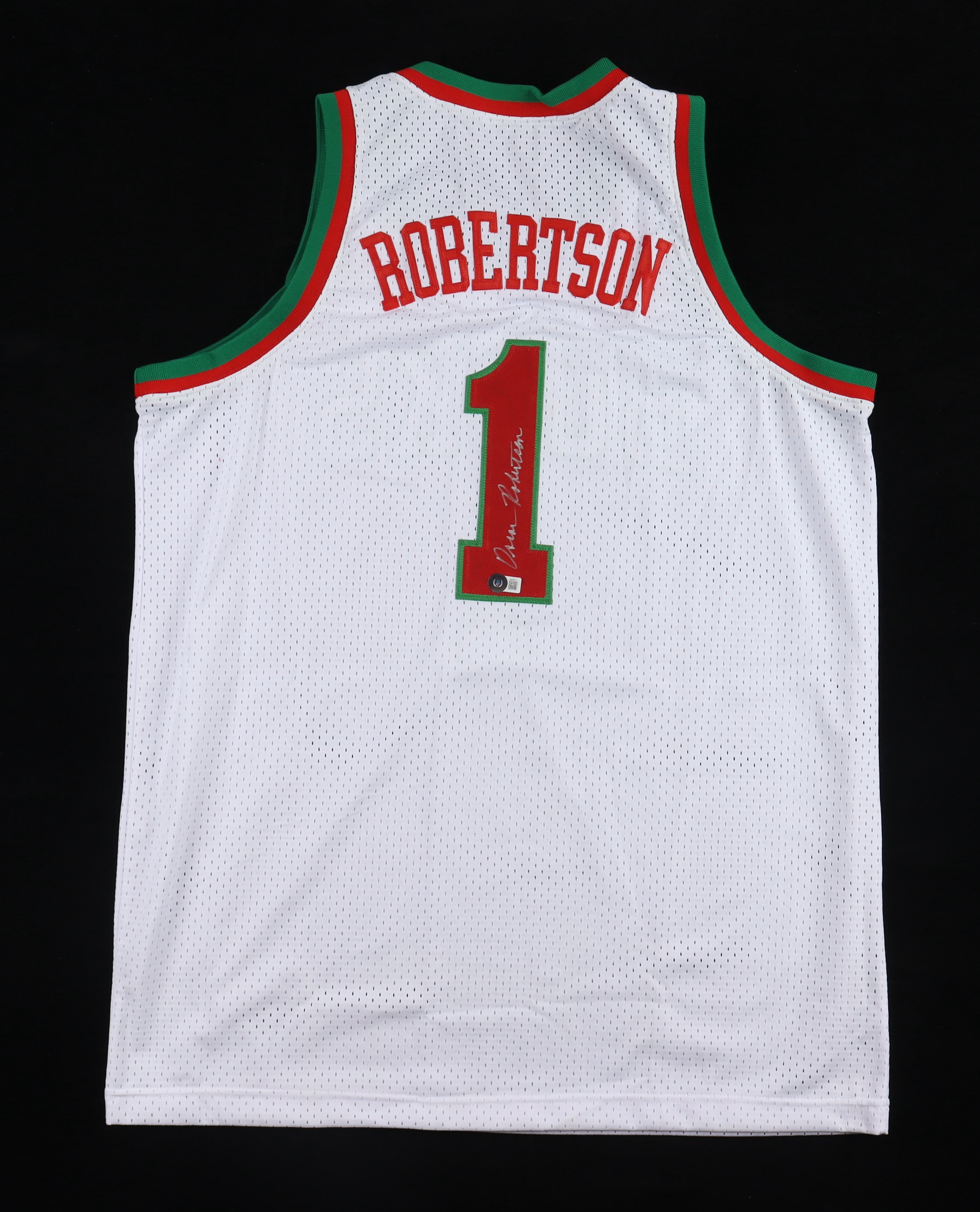 Custom jersey. Everything is sewn on, size XL. Hand-signed by Oscar Robertson (HOF).