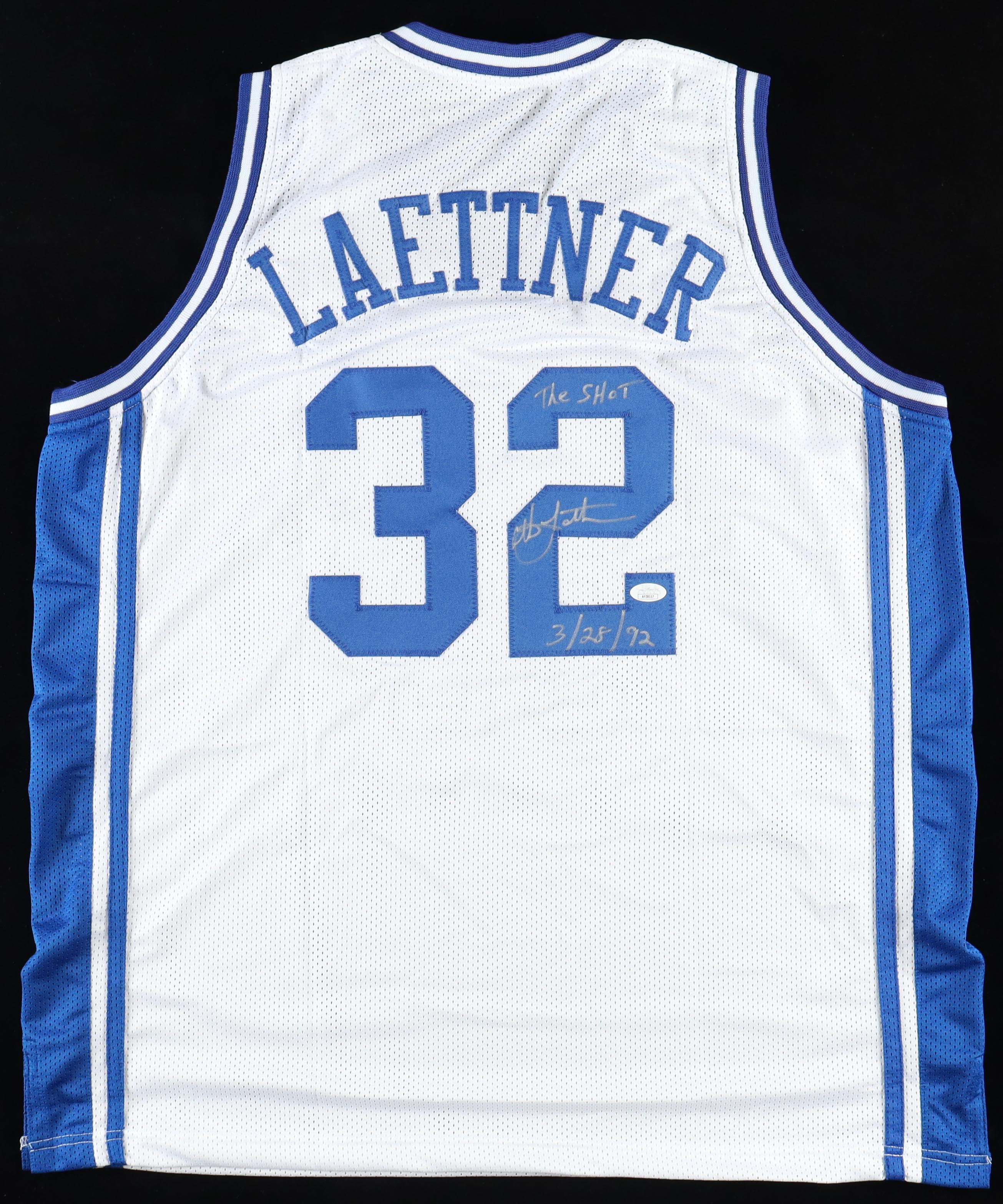 Christian Laettner Signed Jersey Inscribed "The Shot" & "3/28/92" (JSA)