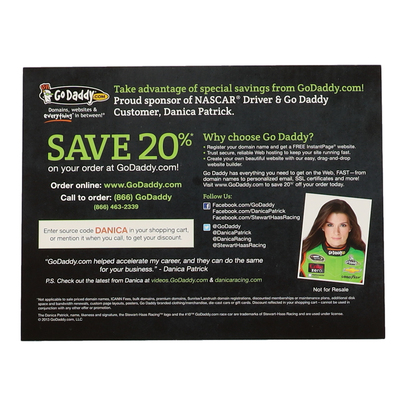 Photo measures 8" x 10" in size and has been hand-signed by Danica Patrick.