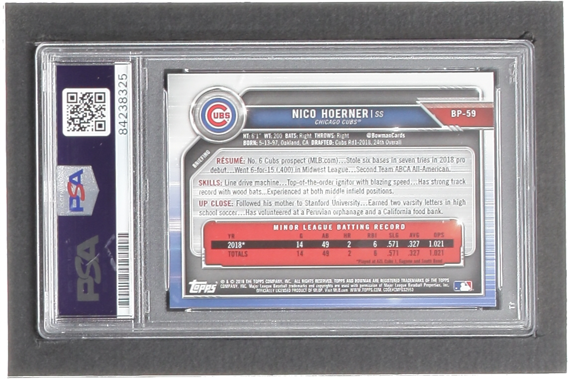 Nico Hoerner 2019 Bowman Prospects #BP59 RC (PSA)