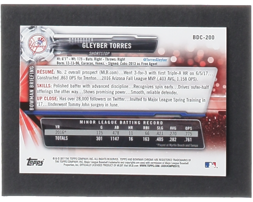 Gleyber Torres 2017 Bowman Chrome Draft #BDC200
