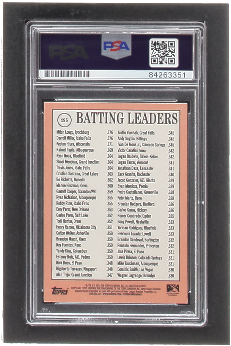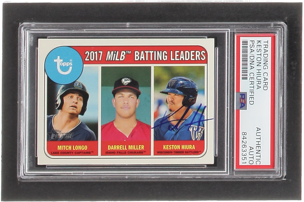 Keston Hiura Signed 2018 Topps Heritage Minors #195 Darrell Miller / Keston Hiura / Mitch Longo RC (PSA)