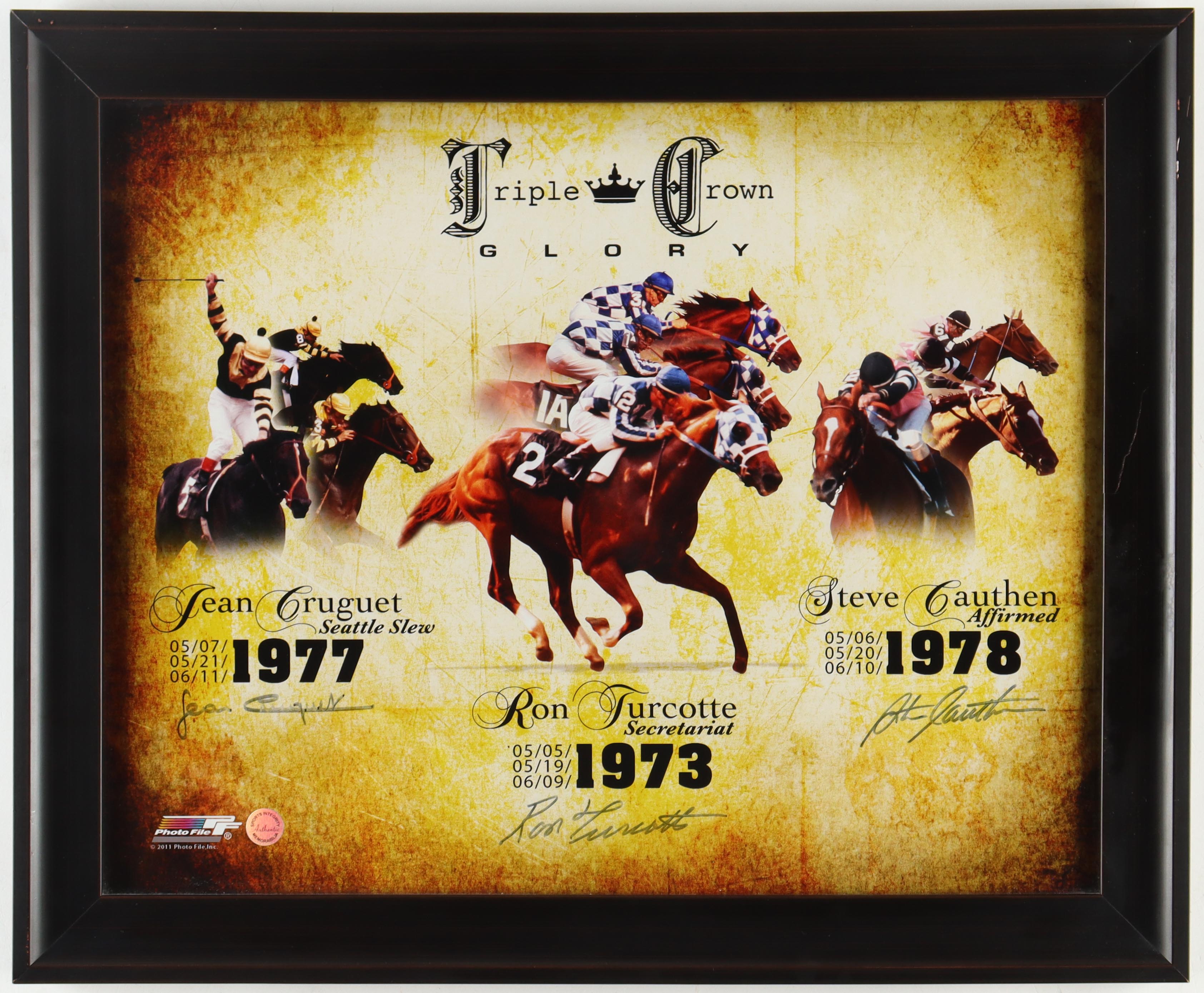 Ron Turcotte, Steve Cauthen & Jean Cruguet Signed Triple Crown Custom Framed Photo (Sports Integrity)
