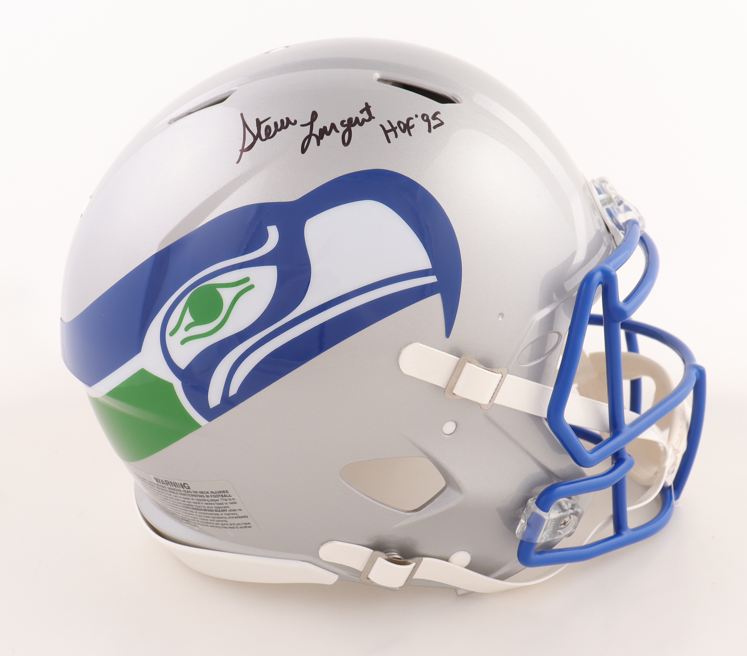 Riddell Seattle Seahawks full-size authentic on-field Speed helmet. Hand-signed and inscribed by Steve Largent (HOF).