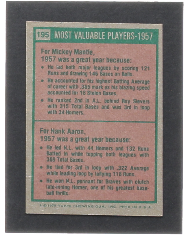 Mickey Mantle / Hank Aaron 1975 Topps #195 MVP