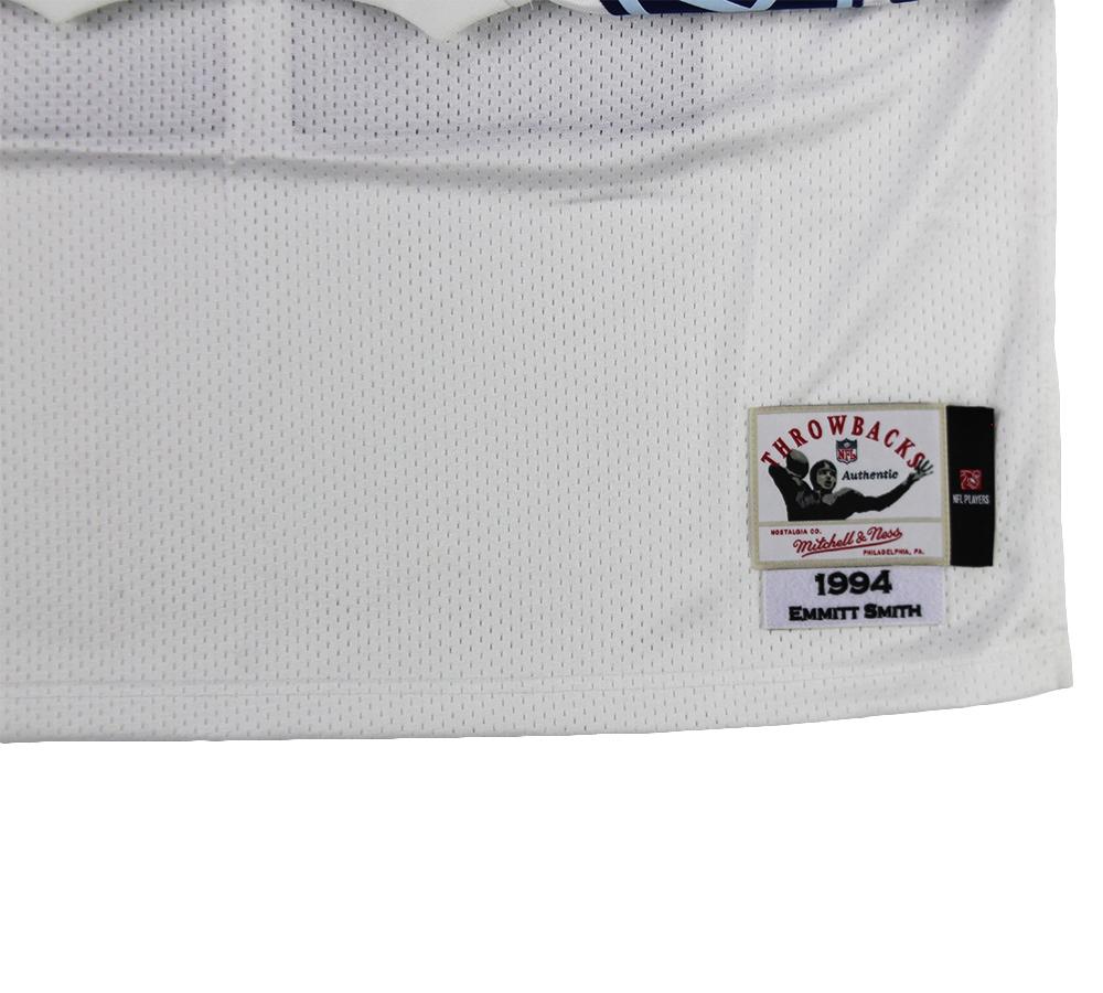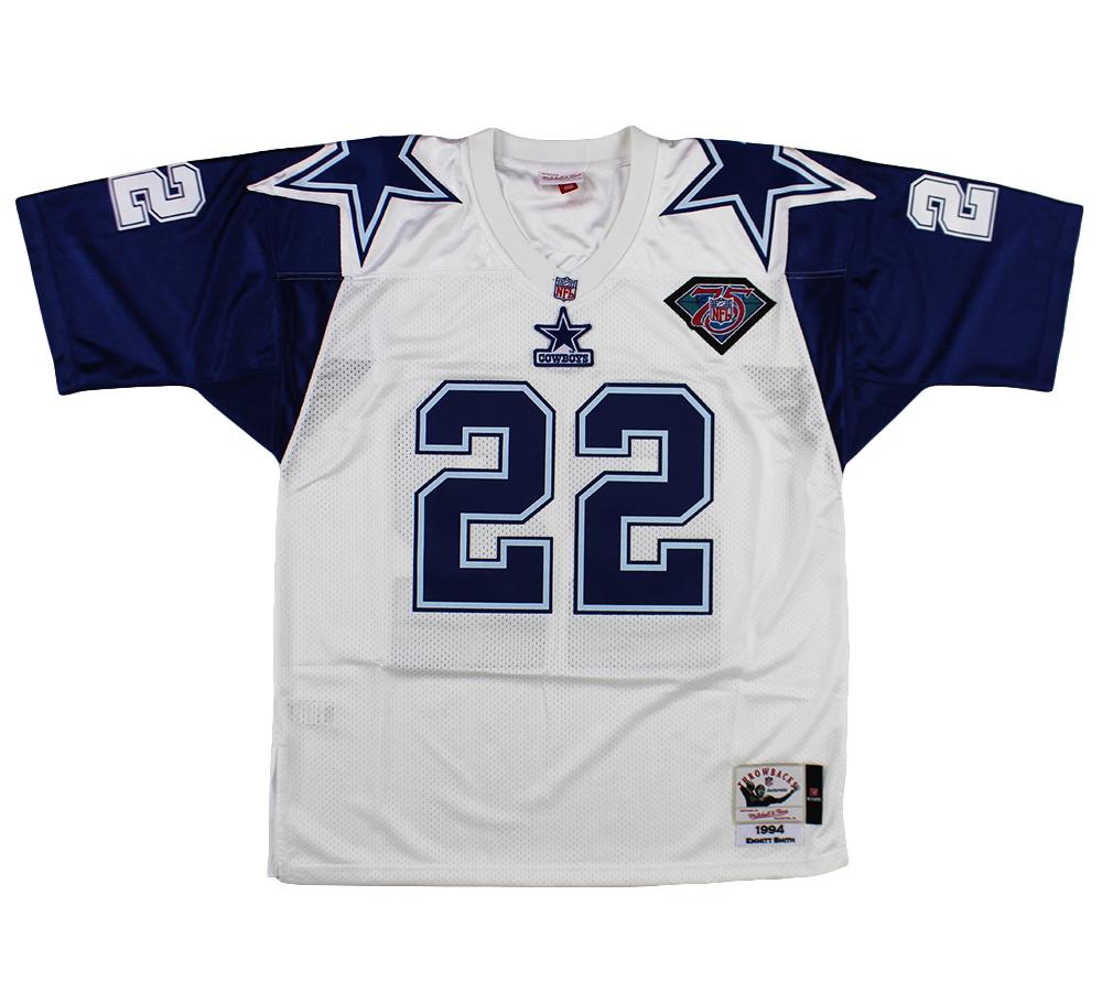Mitchell & Ness on-field style jersey. Everything sewn on, size XL. Hand-signed by Emmitt Smith (Dallas Cowboys, HOF).