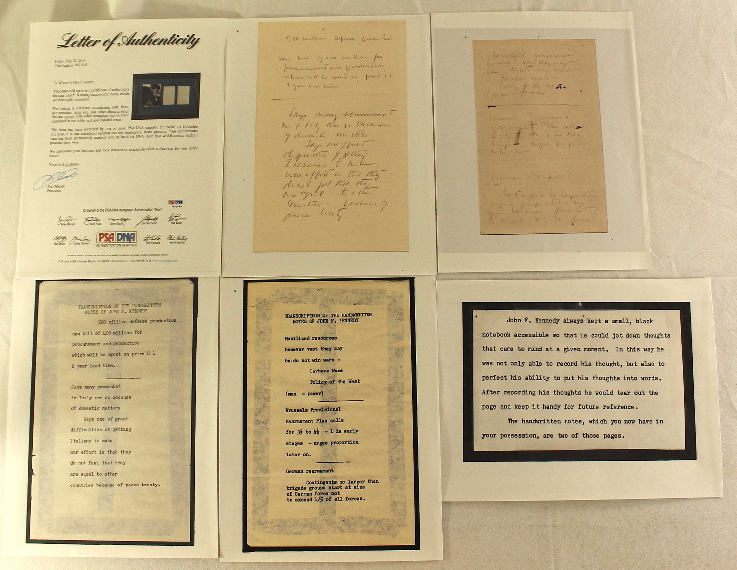 John F. Kennedy Custom Matted Cut Display With Hand-Written Word From Personal Notes (PSA)