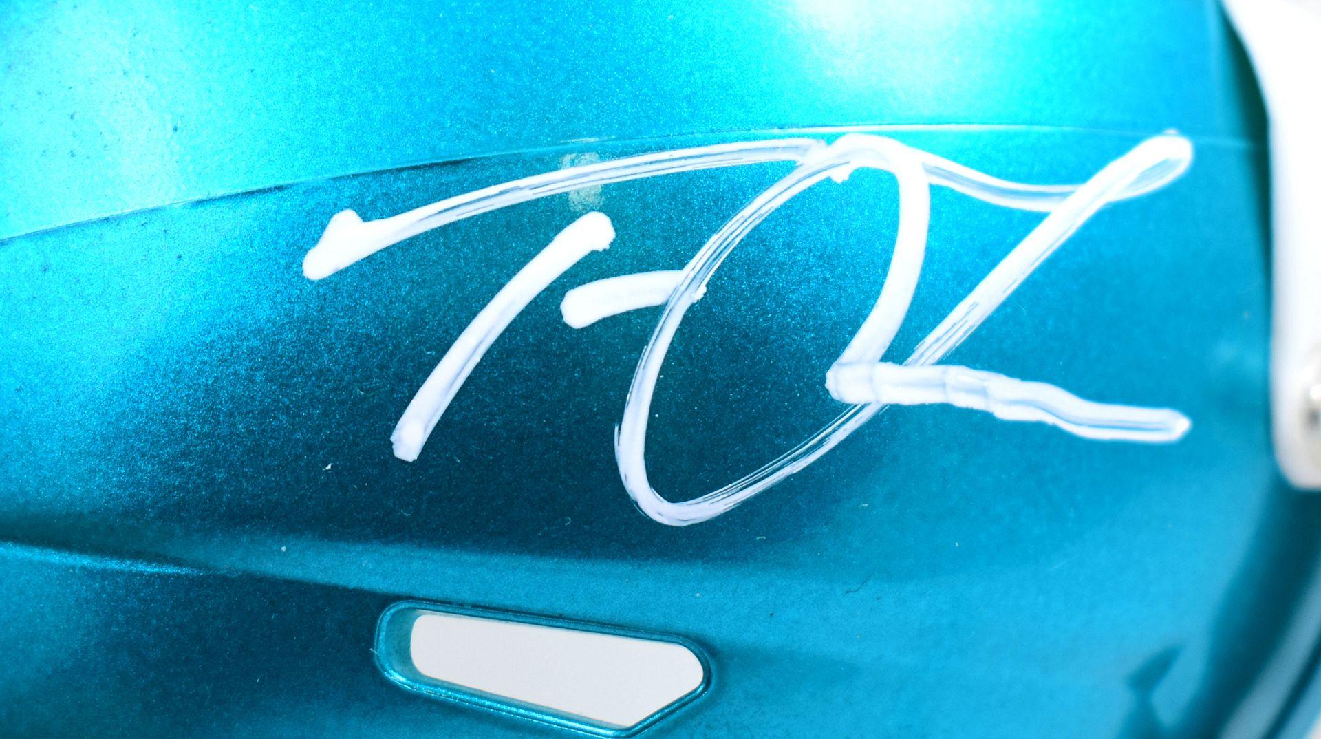Riddell Jacksonville Jaguars Flash Alternate speed mini helmet has been hand-signed by Trevor Lawrence.