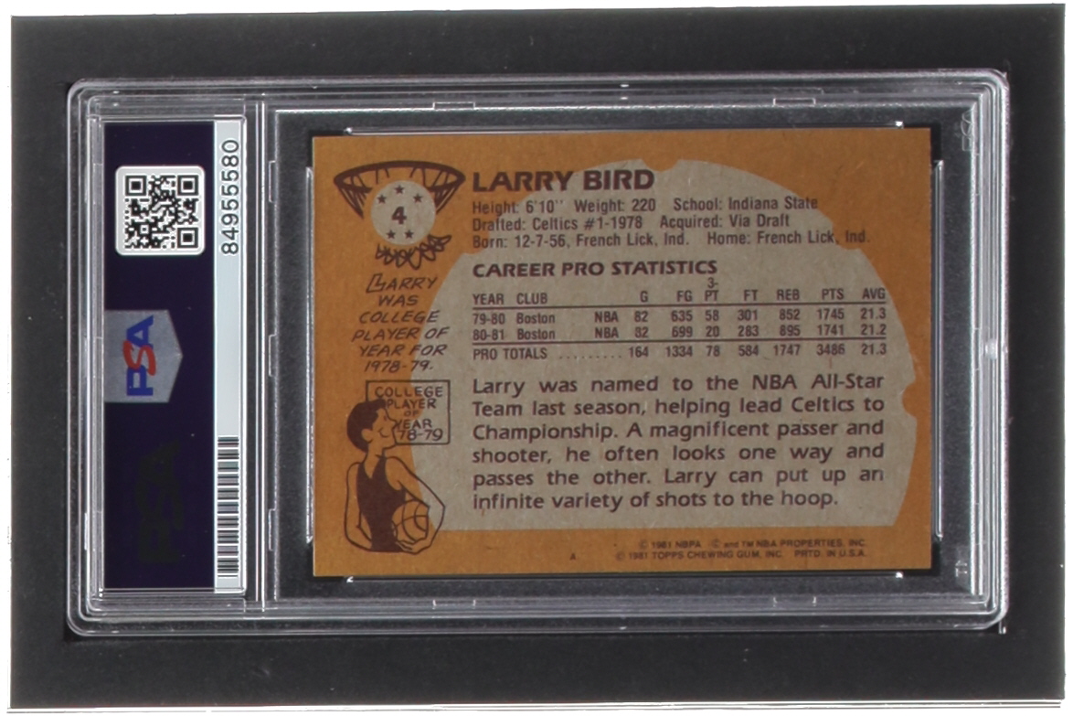 Larry Bird Signed 1981-82 Topps #4 (PSA | Autograph Graded PSA 10)