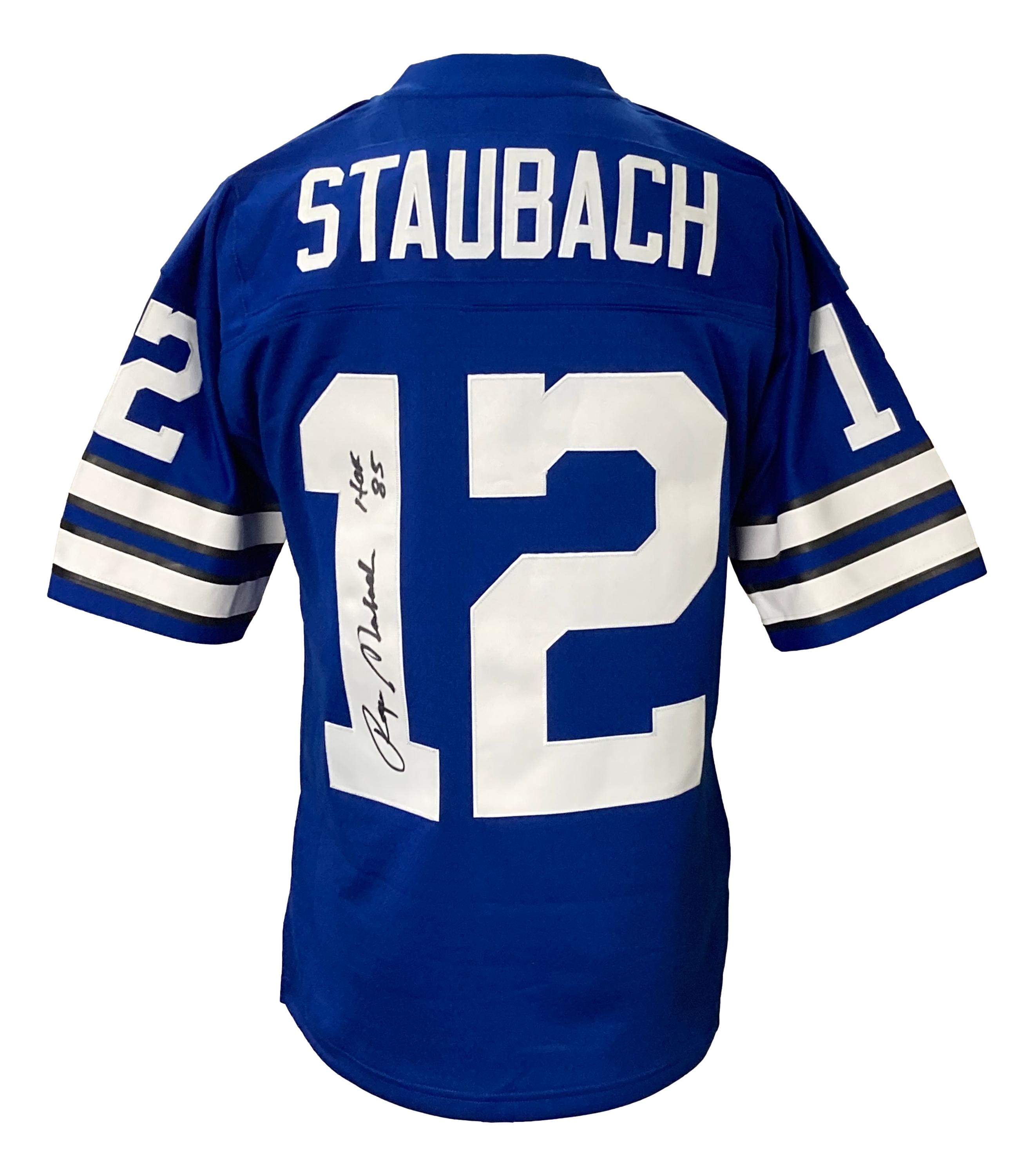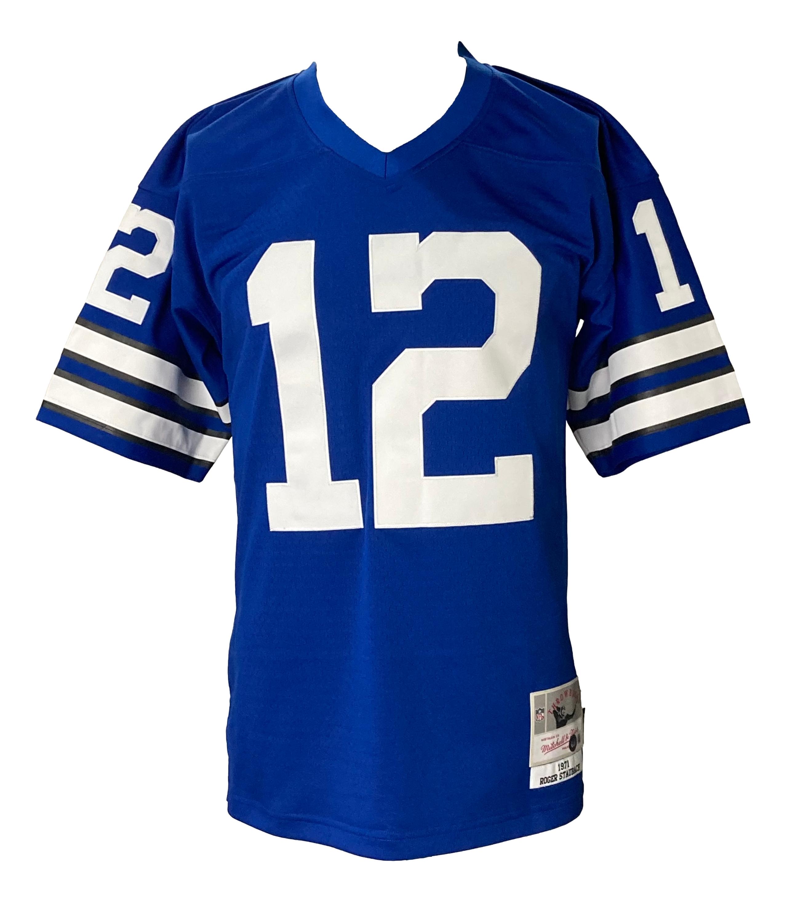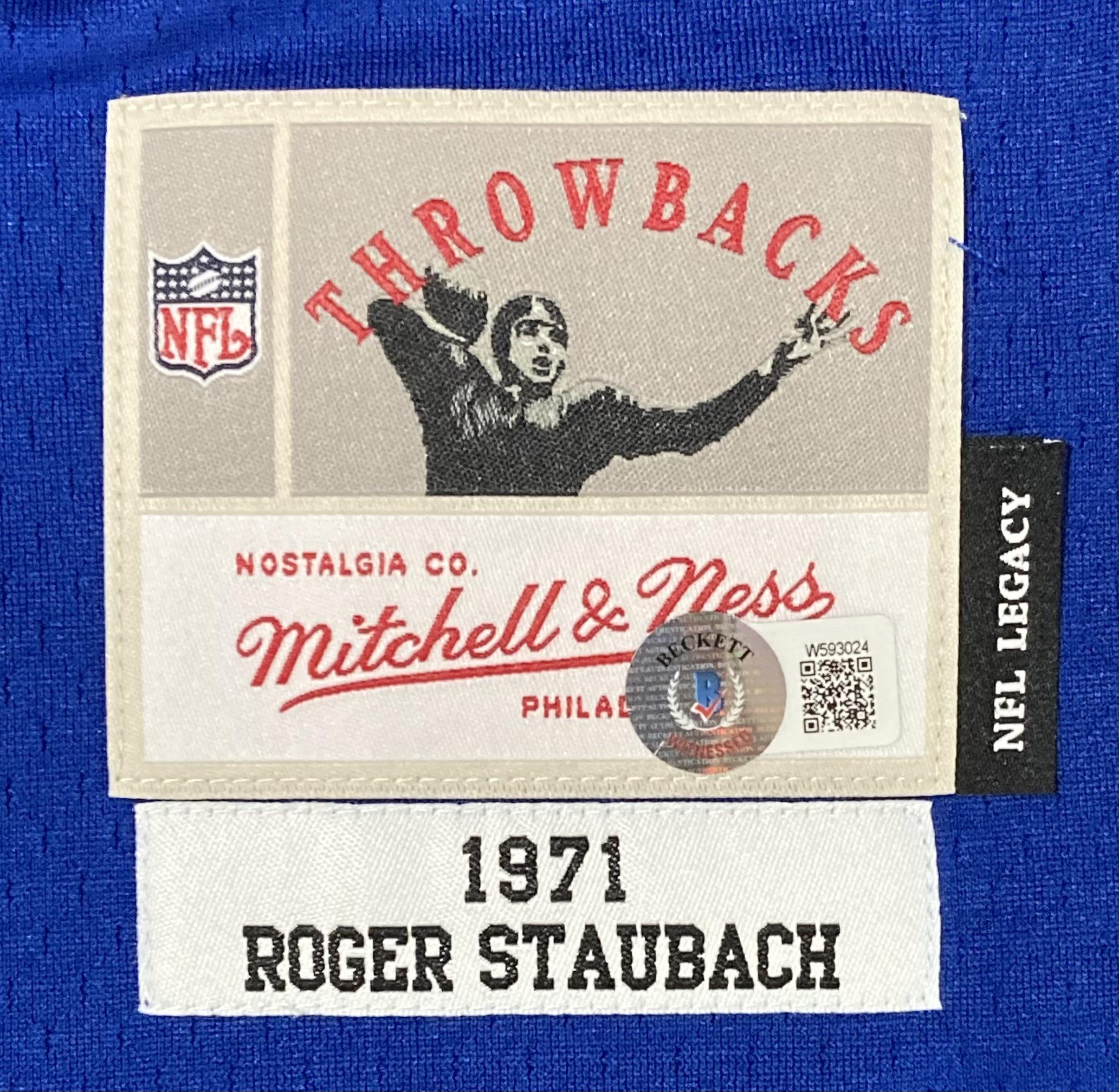 Mitchell & Ness style jersey with everything sewn on, size M. Hand-signed and inscribed by Roger Staubach (Dallas Cowboys, HOF).