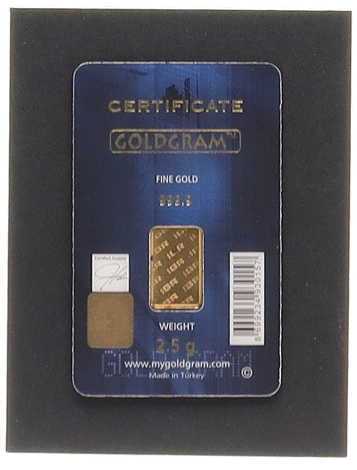 Istanbul Gold Refinery Goldgram 2.5 Grams 999.9 Fine Gold Bullion Bar
