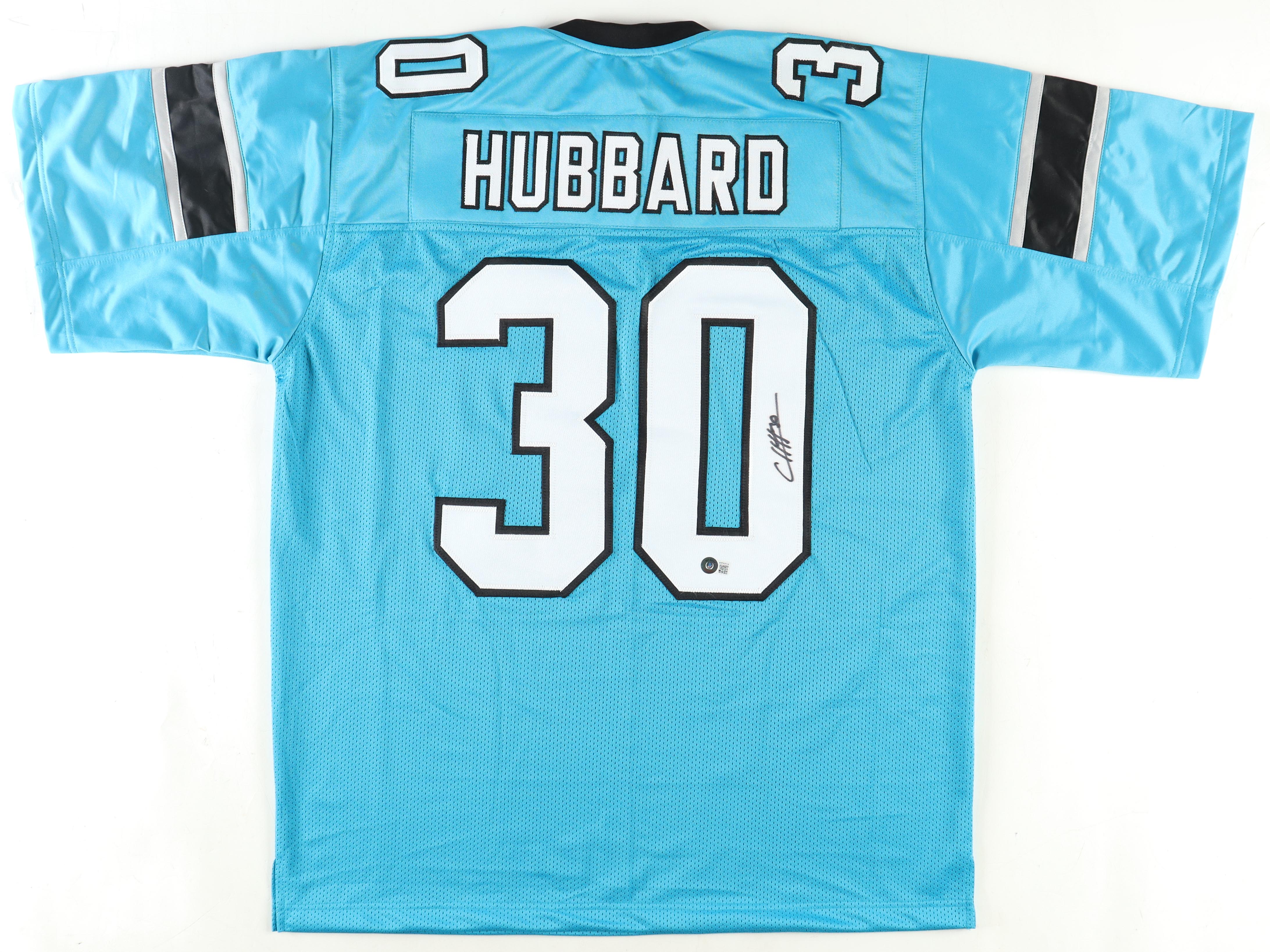 Custom jersey with everything sewn on, size XL. Hand-signed by Chubba Hubbard.