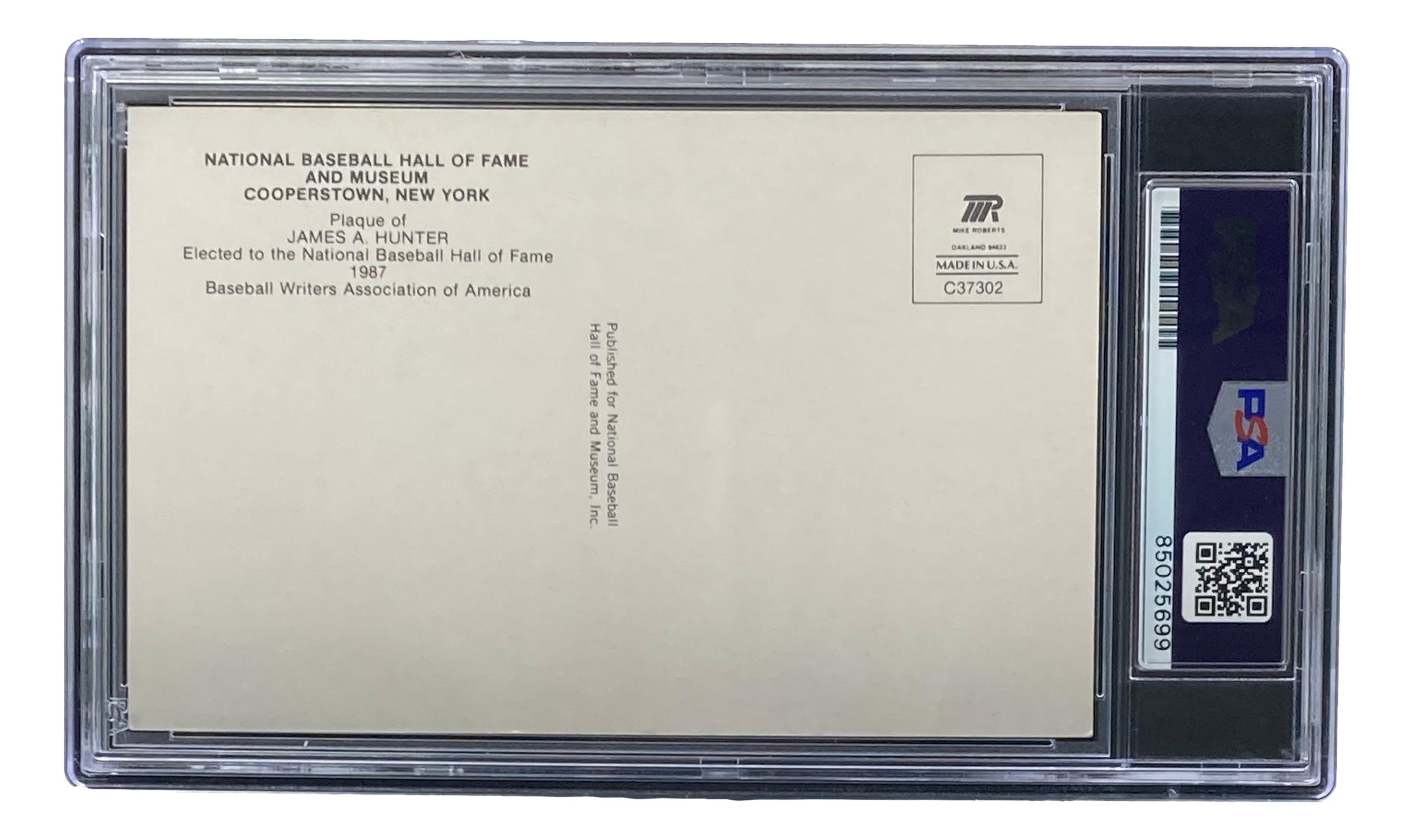 Jim "Catfish" Hunter Signed Hall of Fame Plaque Postcard (PSA)