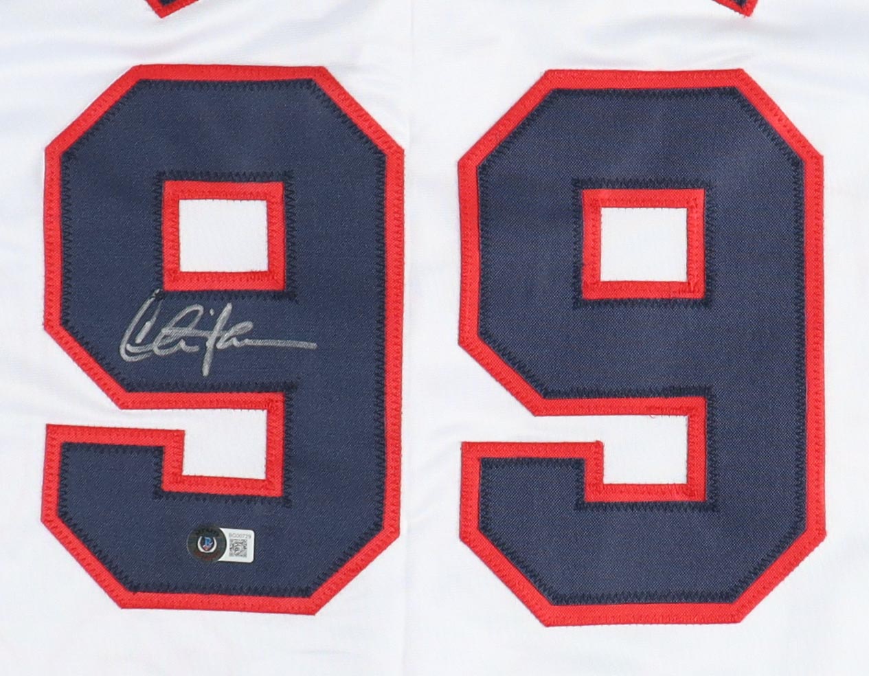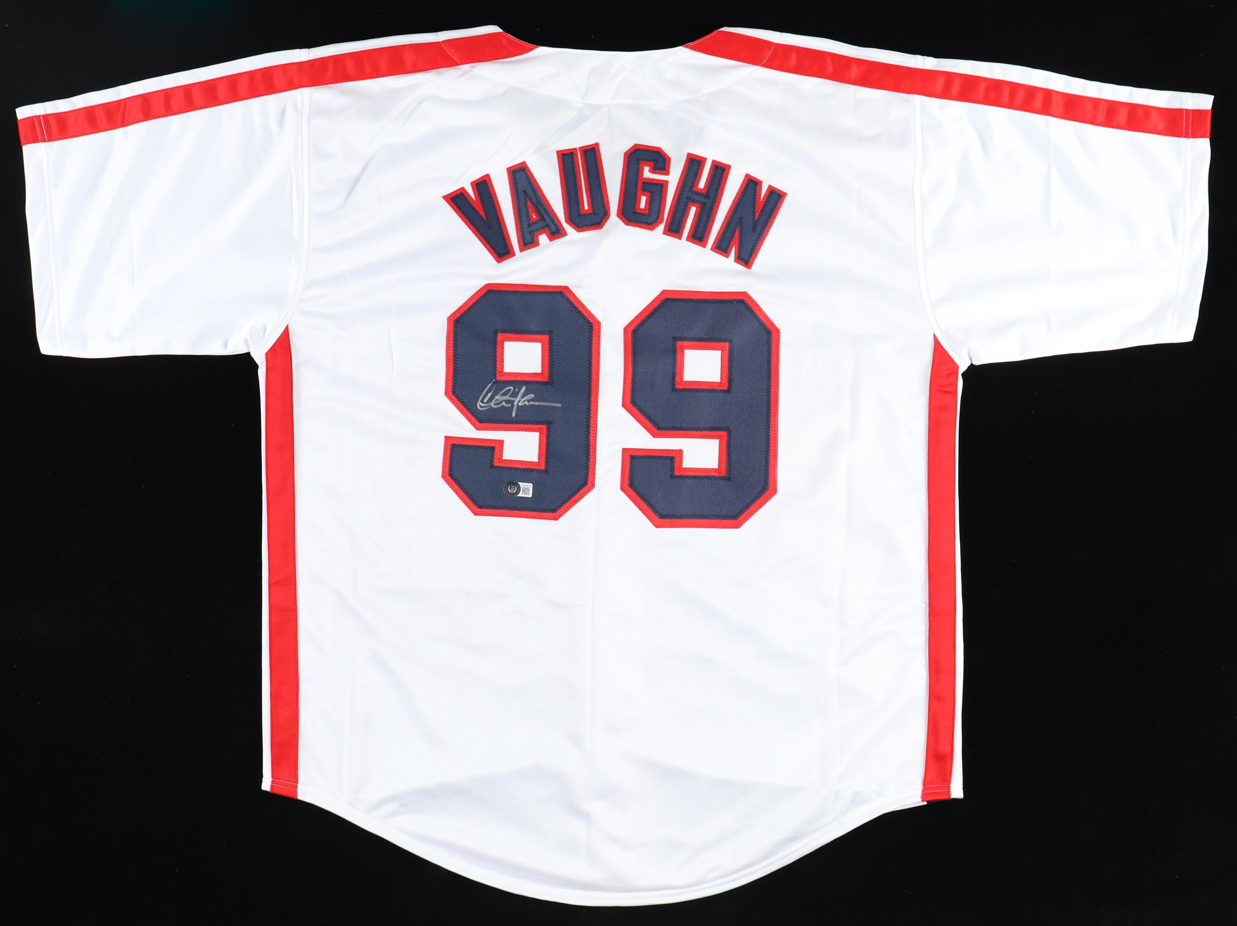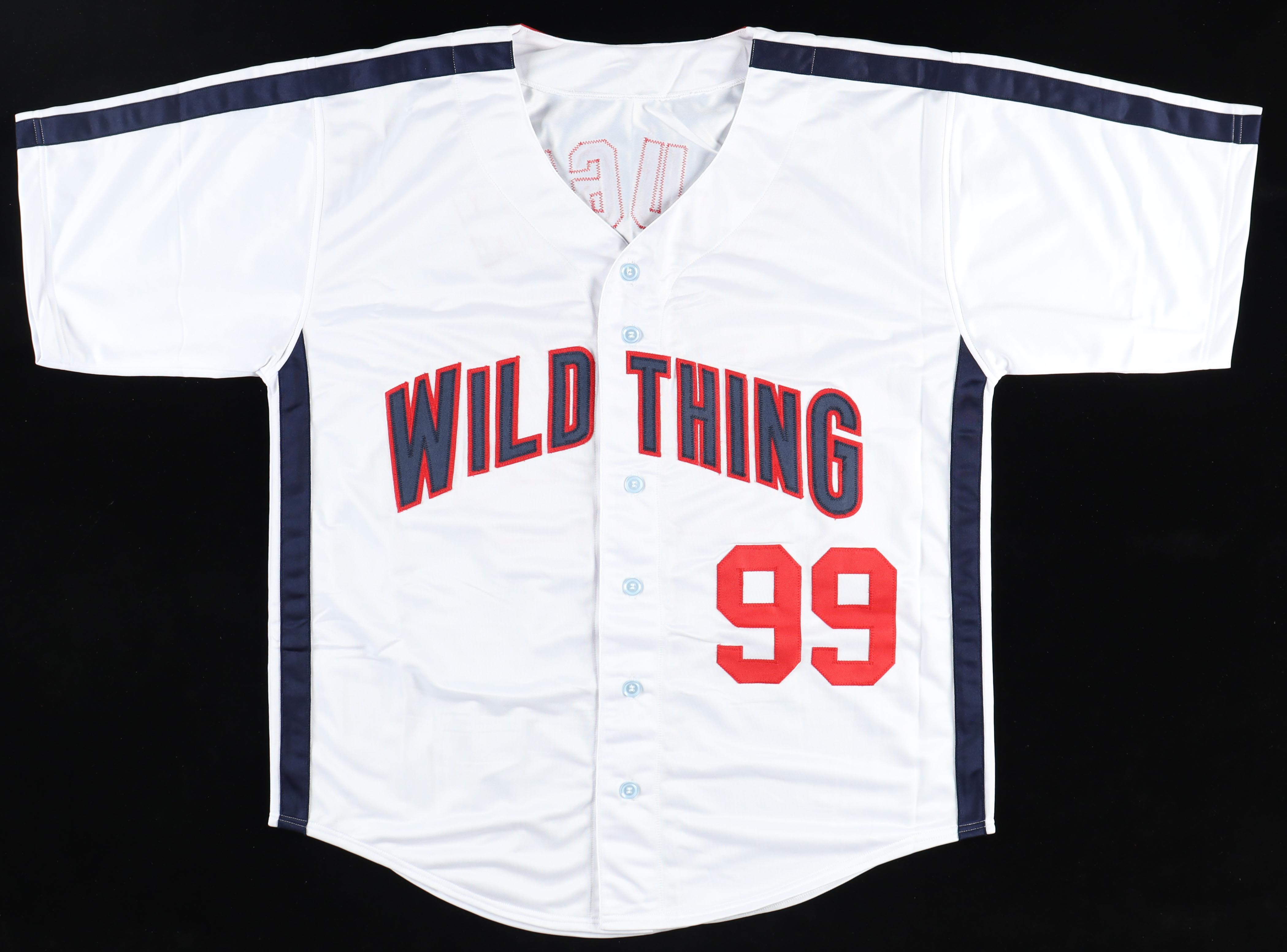 Custom jersey. Everything is sewn on, size XL. Hand-signed by Charlie Sheen (Ricky "Wild Thing" Vaughn).