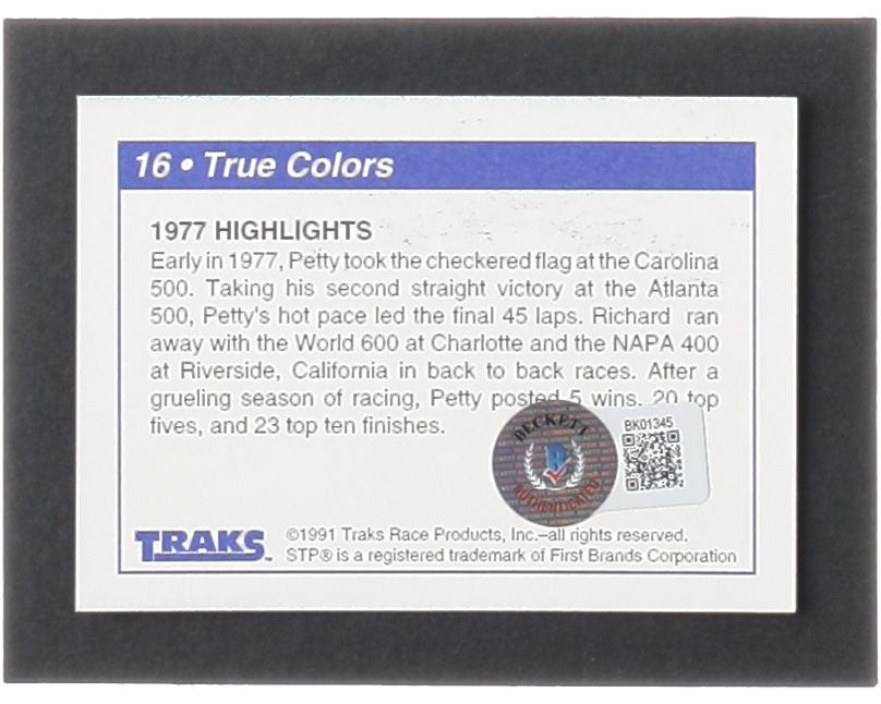 Richard Petty Signed 1991 Traks #16 Richard Petty's Car (Beckett)