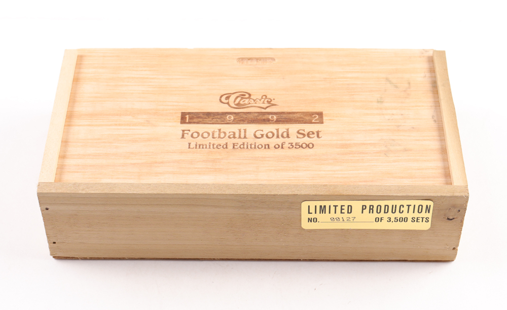 Serially Numbered #127/3500. Unopened 1992 Classic Football Gold Complete Set of (101) Multi-sport Cards. Comes in a walnut display case. 1992 Classic Draft Picks football gold edition card has been signed by Desmond Howard.