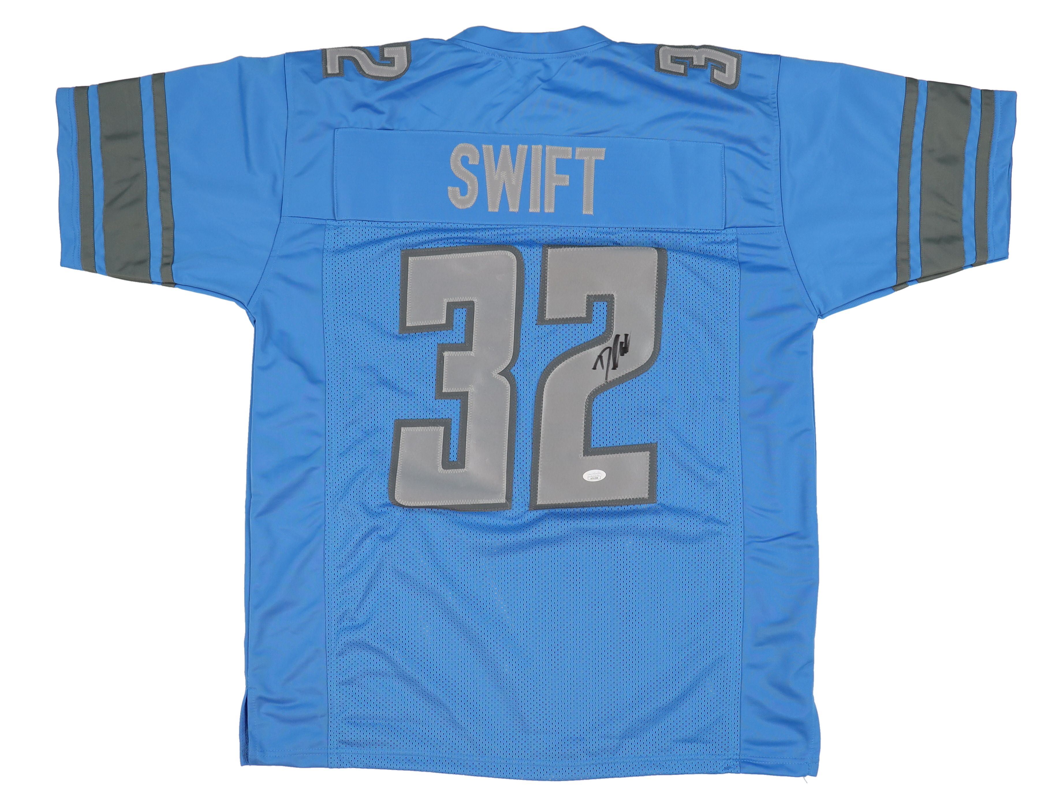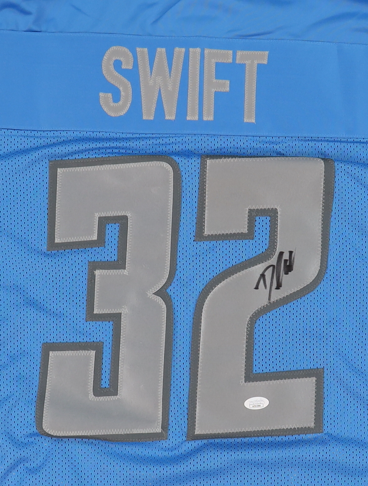 Custom jersey with everything sewn on, size XL. Hand-signed by D'Andre Swift.