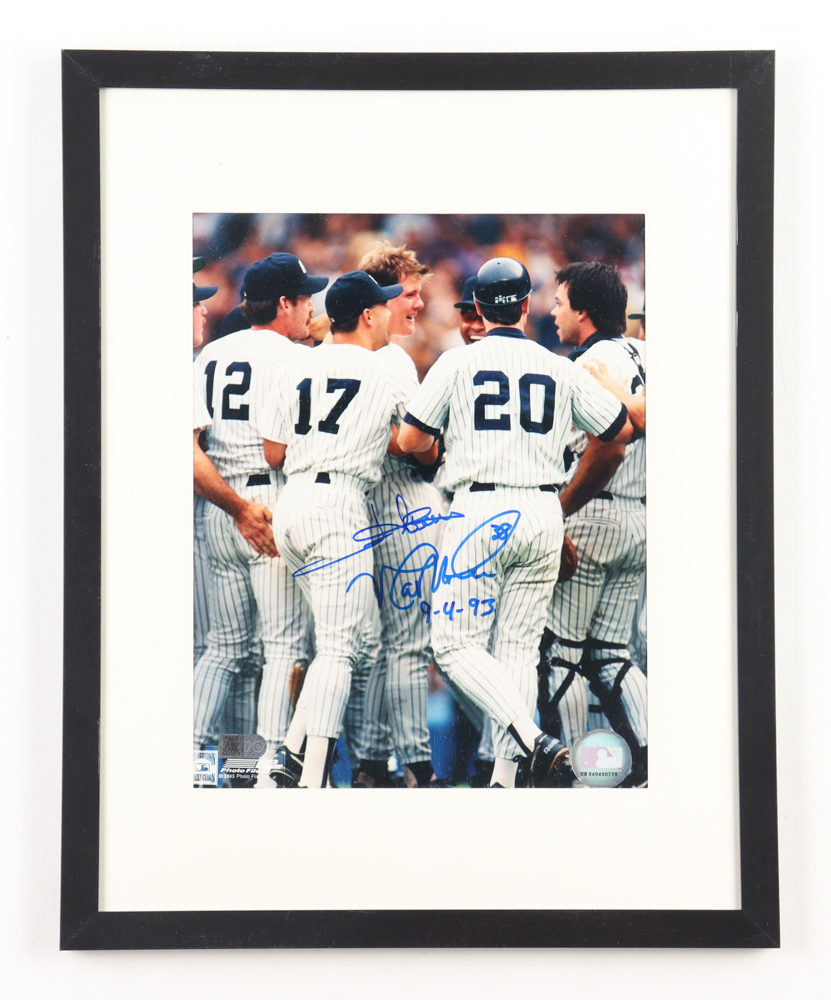 Custom frame measures approximately 12" x 15" in size and features a photo that has been hand-signed and inscribed by Jim Abbott (New York Yankees) and Matt Nokes (New York Yankees).
