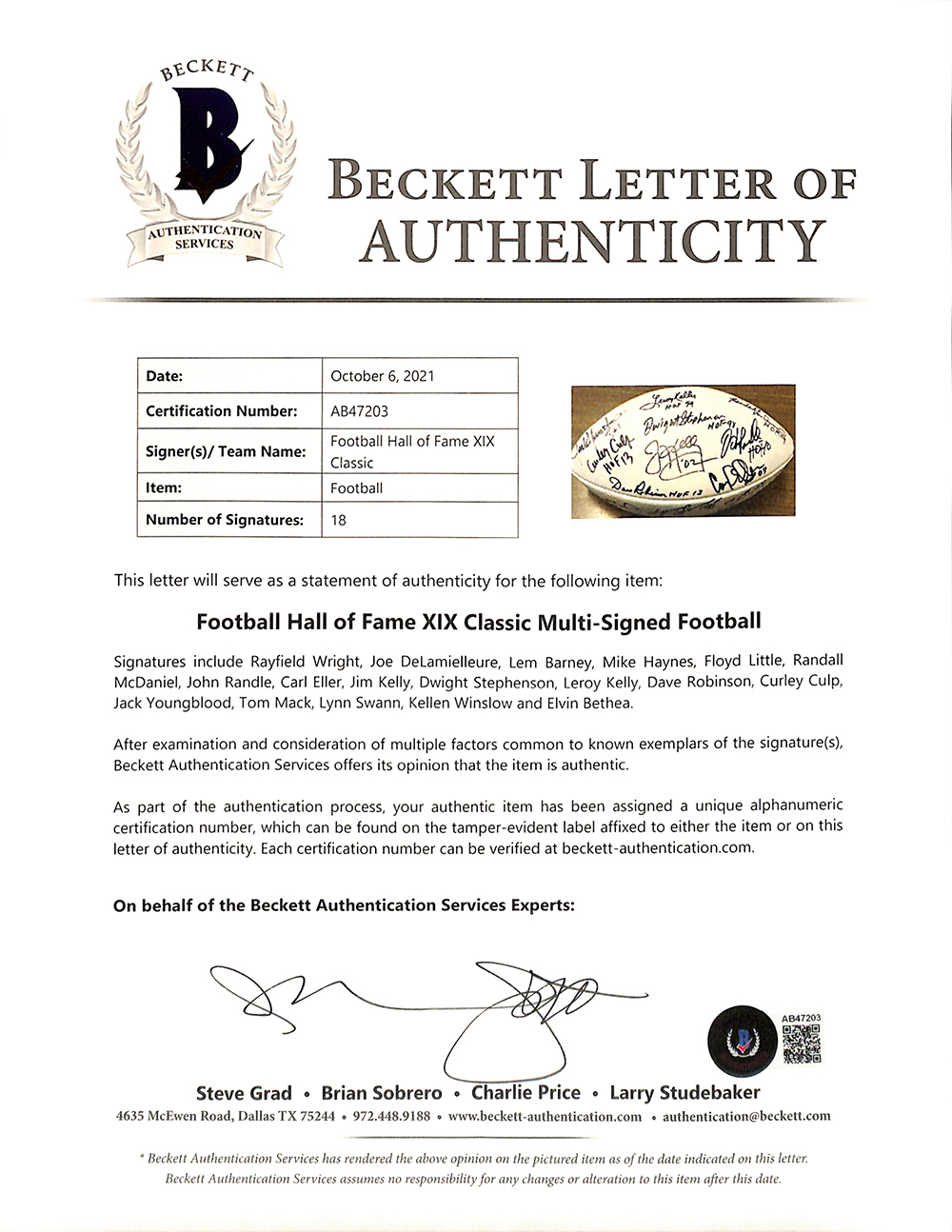 The lot / autograph(s) includes an official Beckett Authentication Services hologram and matching LOA for authenticity purposes.