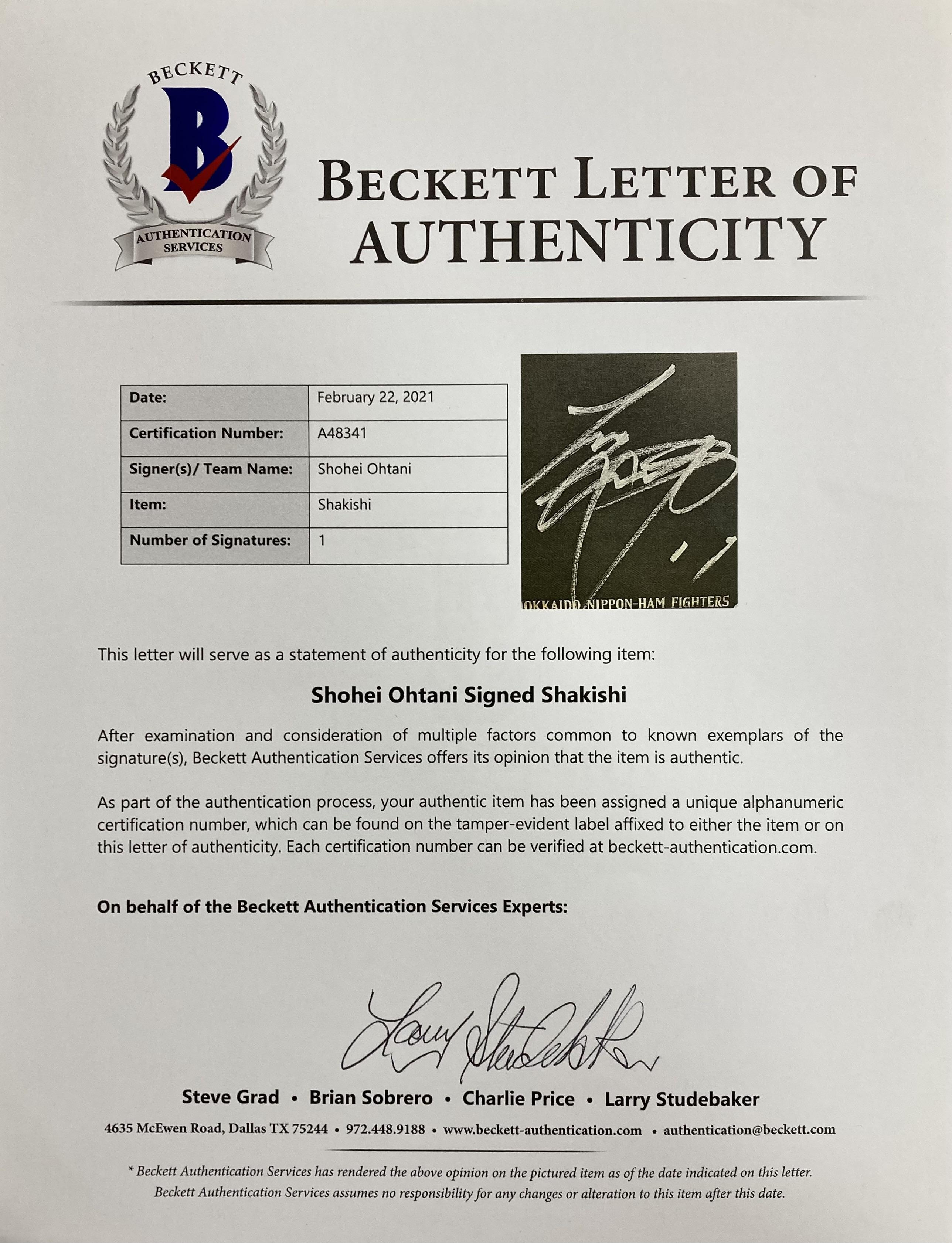 The autograph includes an official Beckett Authentication Services hologram and matching LOA for authenticity purposes.