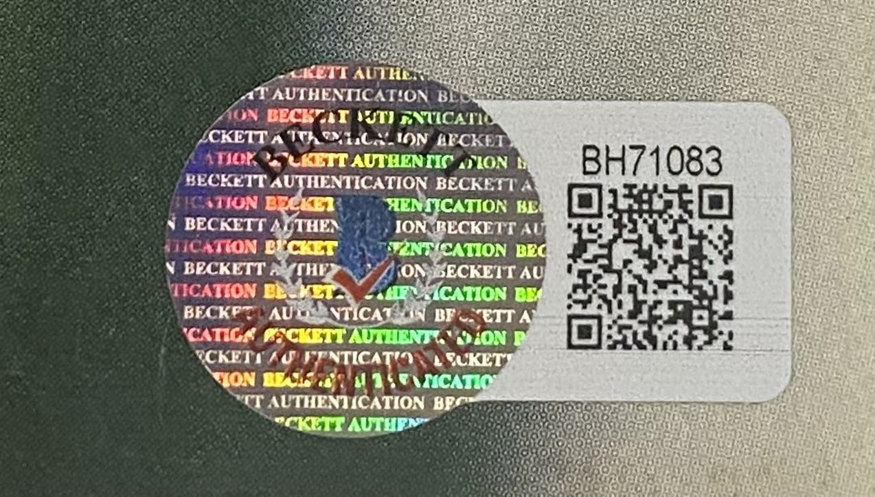 The autograph includes an official Beckett Authentication Services serially-numbered hologram and matching COA for authenticity purposes.
