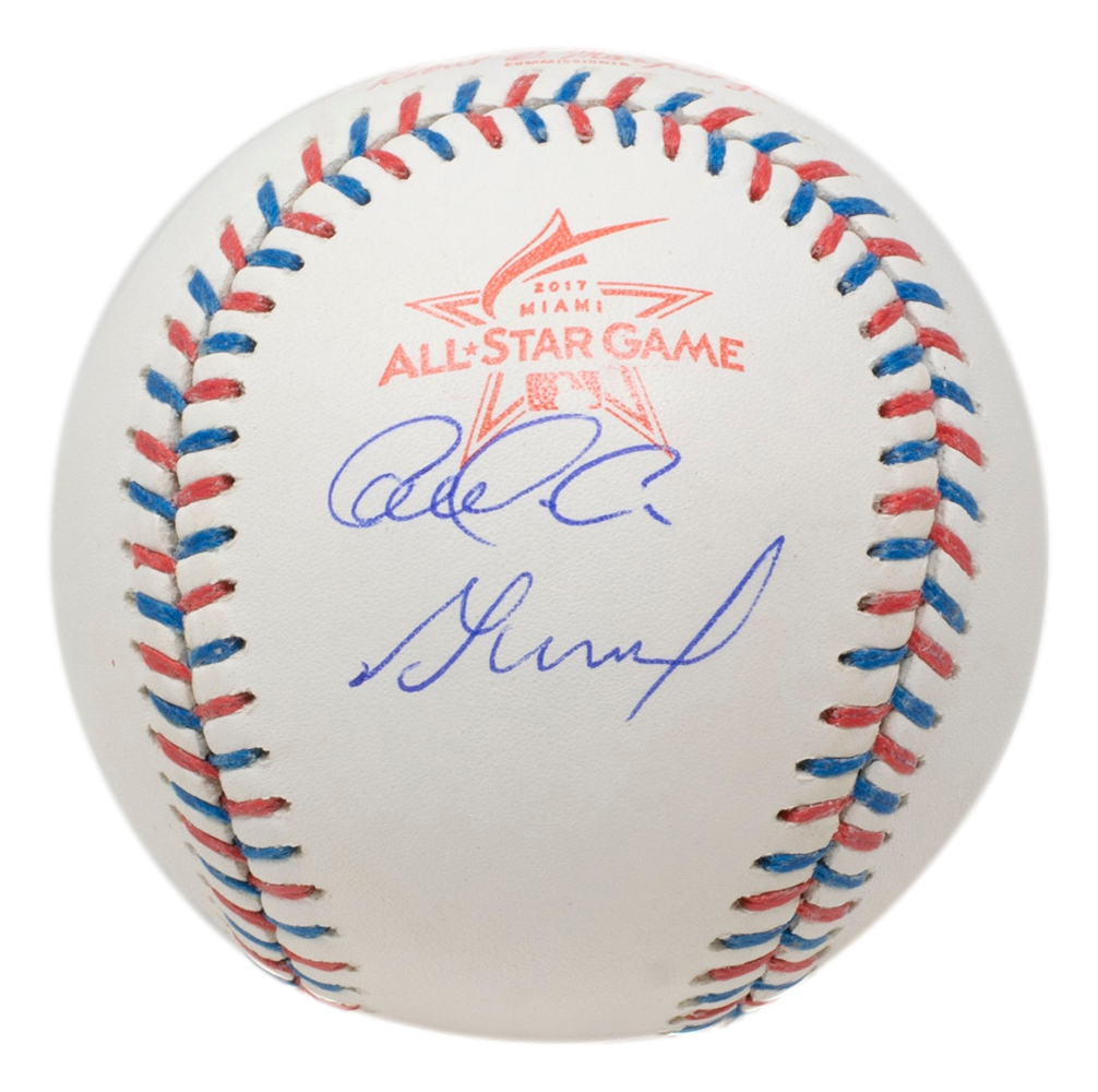 Rawlings Official 2017 All-Star Game baseball has been hand-signed by Carlos Correa and Jose Altuve (Houston Astros).