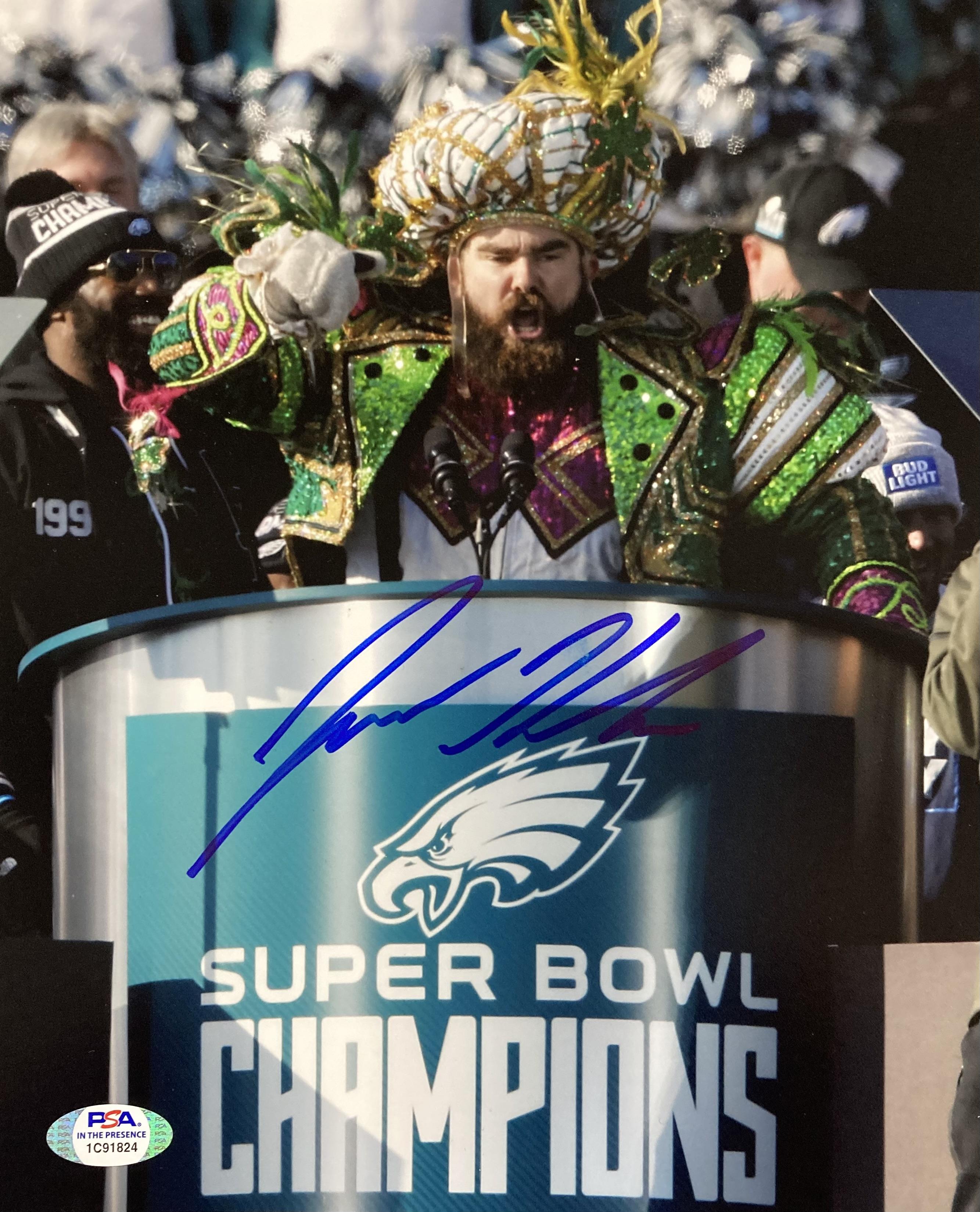 Photo measures 8" x 10" and has been hand-signed by Jason Kelce (Philadelphia Eagles).