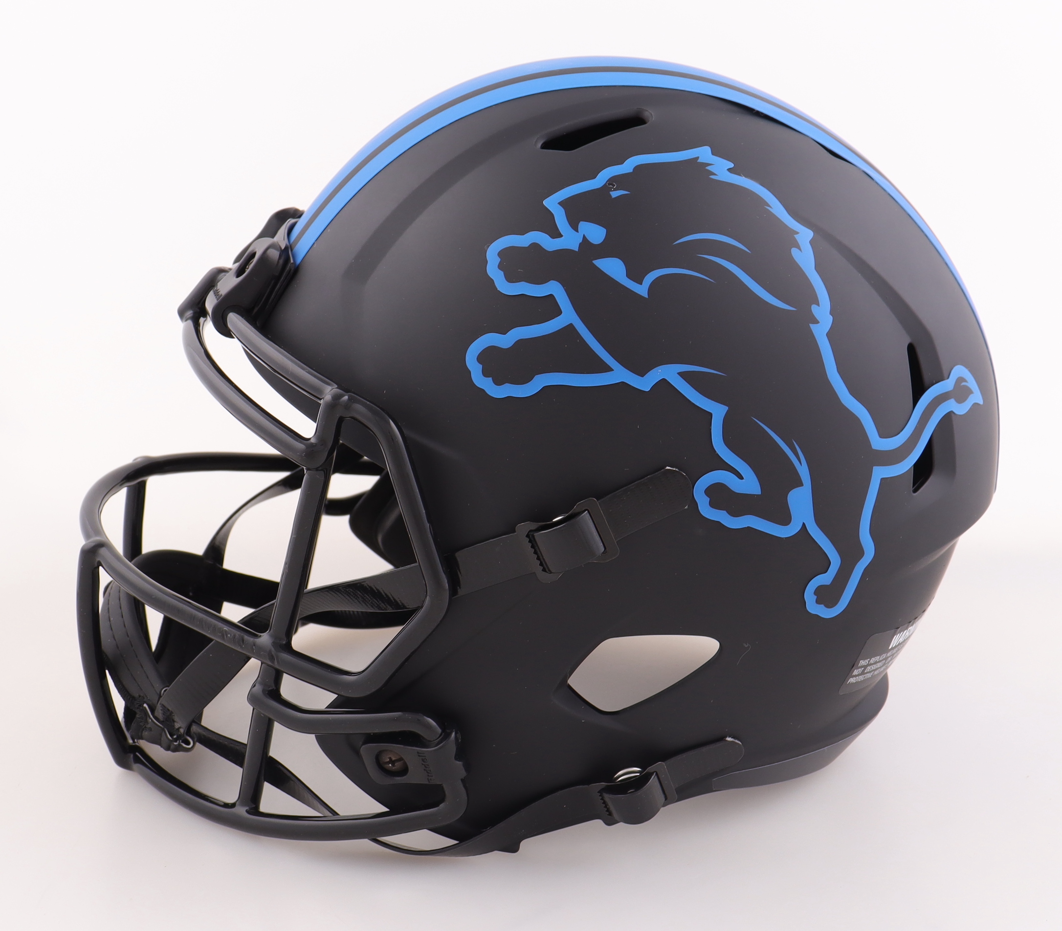 Riddell Detroit Lions full-size replica Eclipse Alternate speed helmet has been hand-signed by D'Andre Swift.