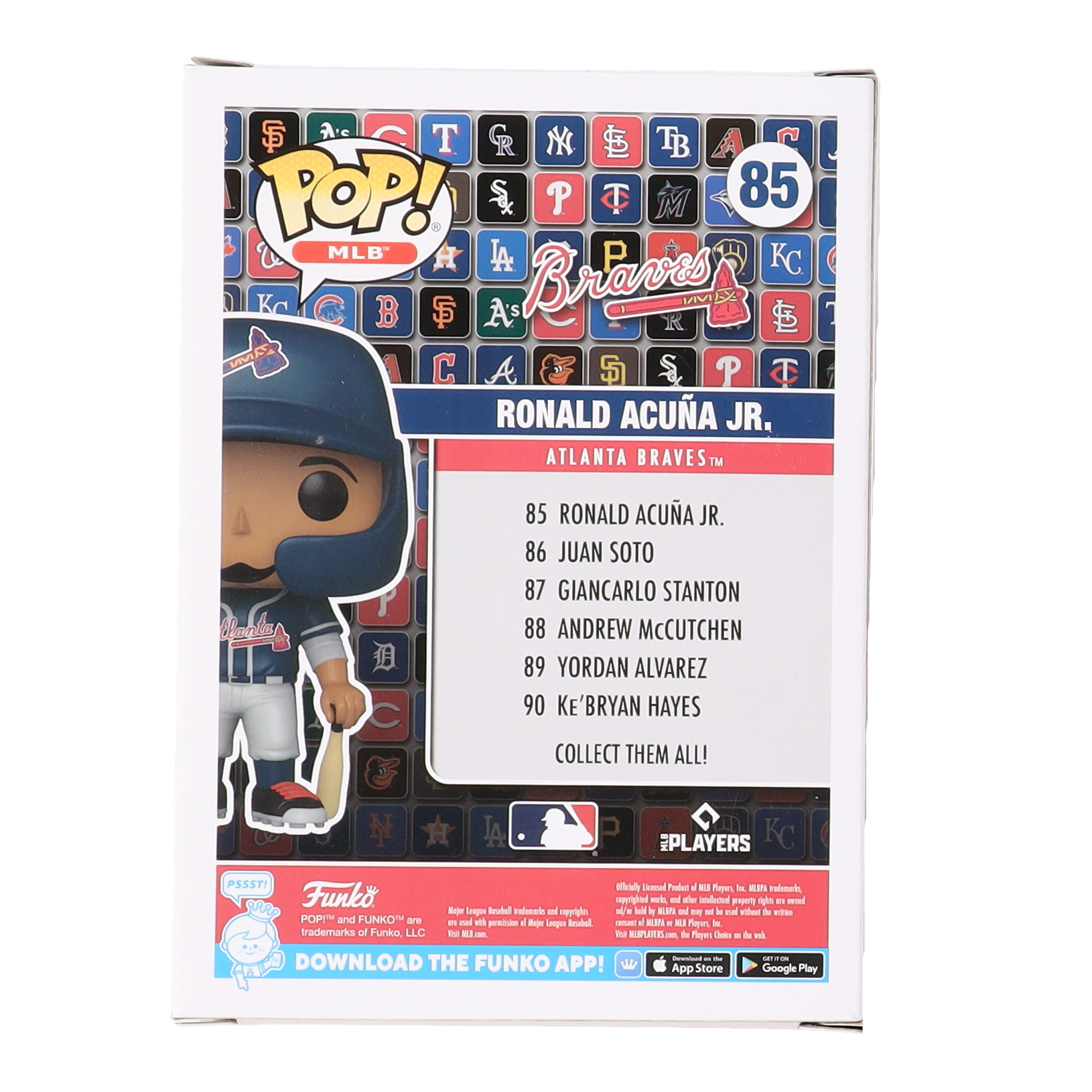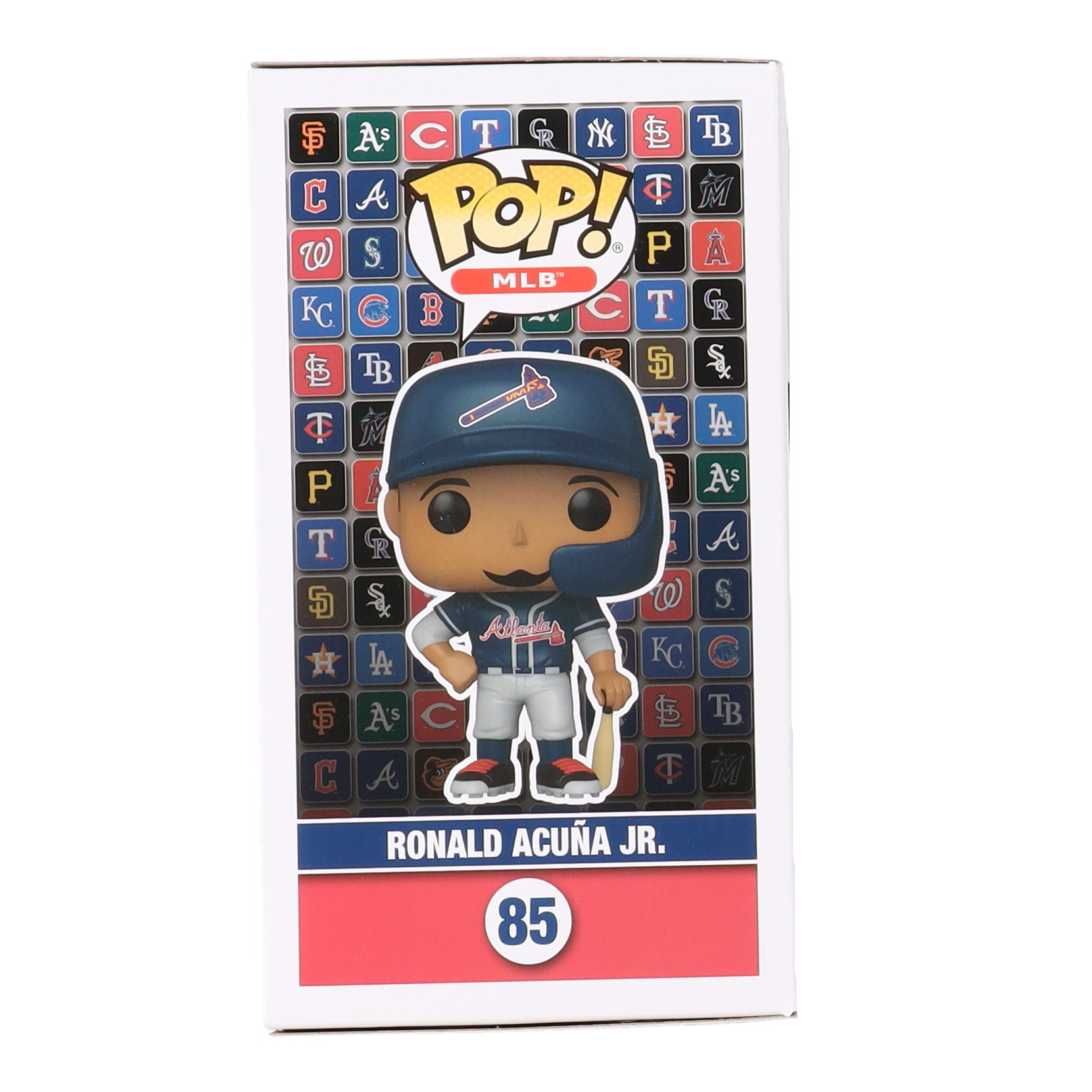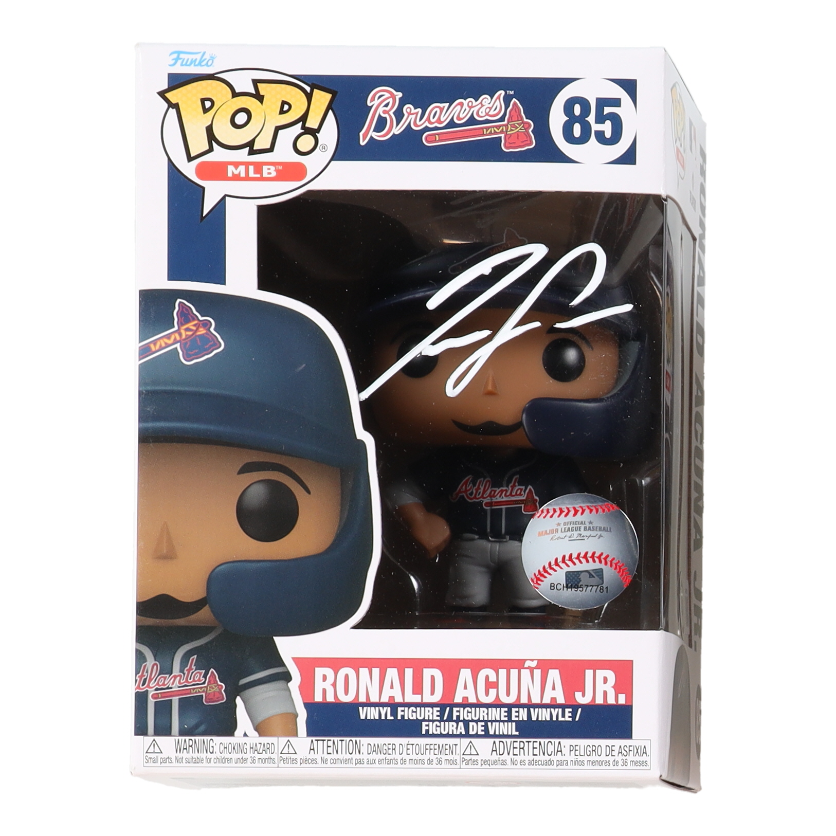 Funko Pop! figure measures approximately 4" tall and has been hand-signed on the packaging by Ronald Acuna Jr. (Atlanta Braves).