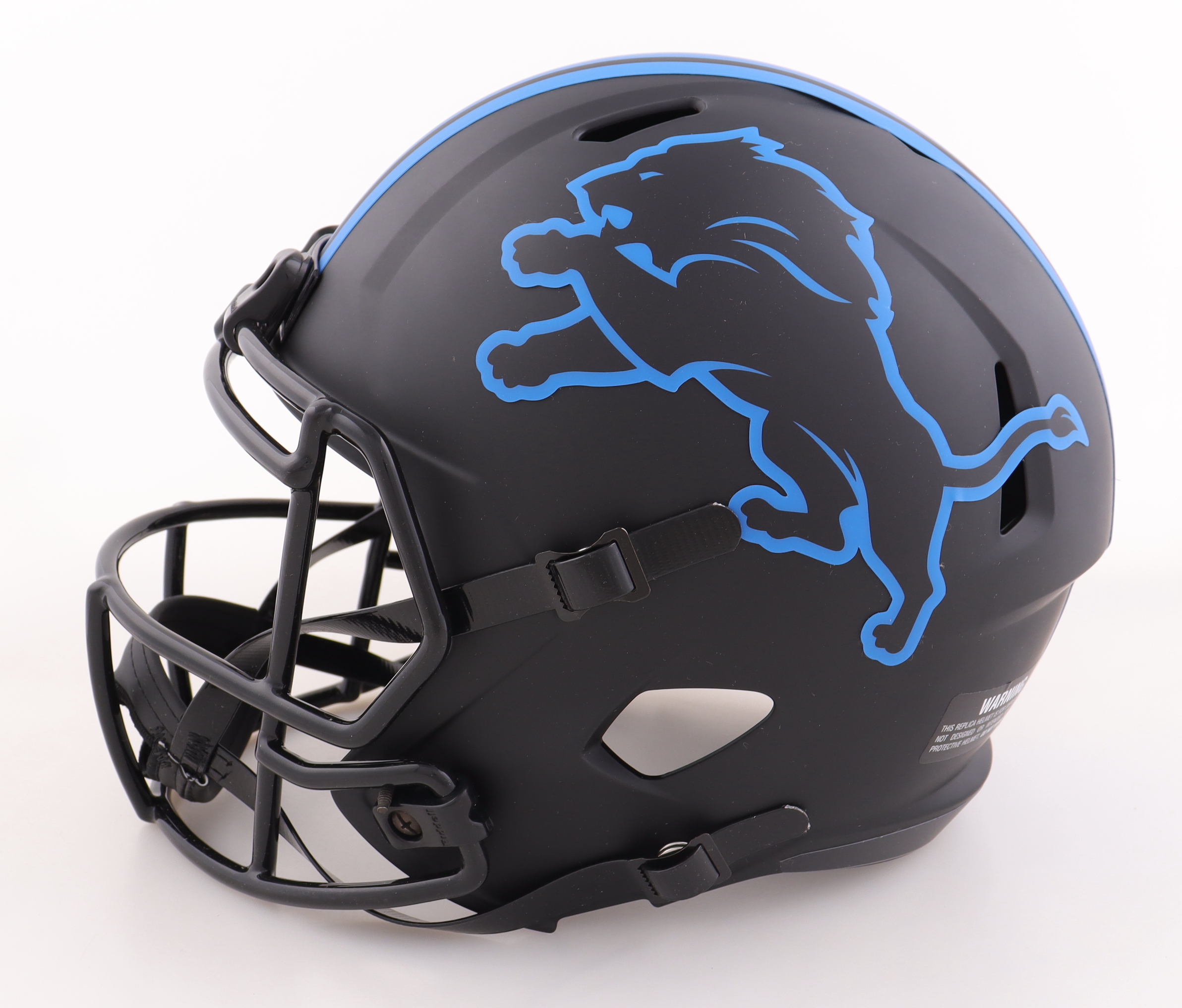 Riddell Detroit Lions full-size replica Eclipse Alternate speed helmet has been hand-signed by D'Andre Swift.