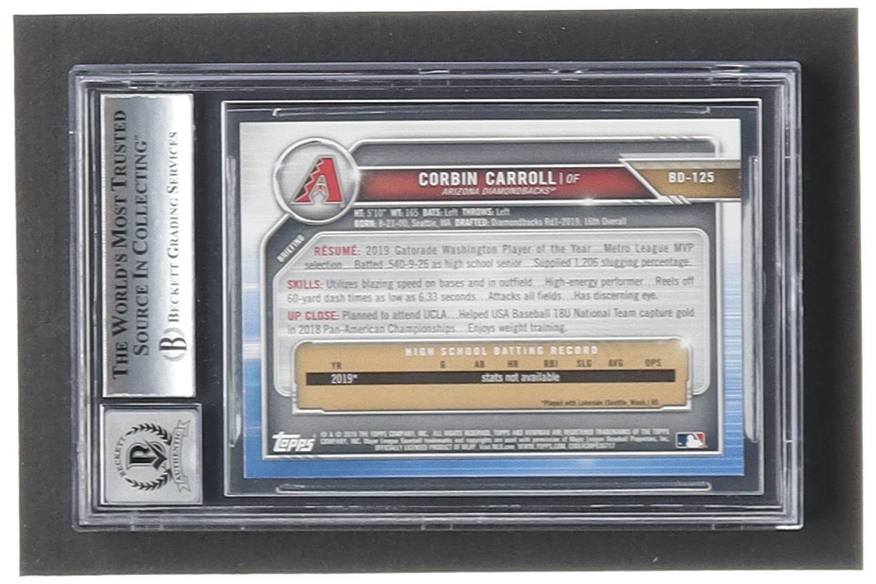 Corbin Carroll Signed 2019 Bowman Draft #BD125 (BGS | Auto Grade 10)