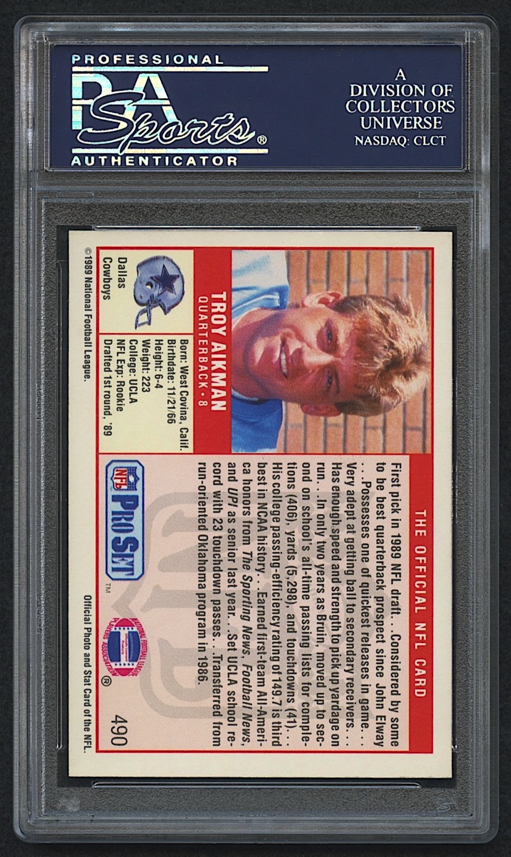 Troy Aikman Signed 1989 Pro Set #490 RC (PSA Encapsulated)