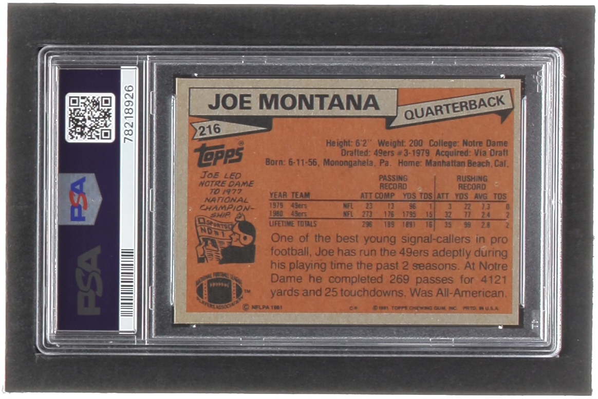 Joe Montana 1981 Topps #216 RC (PSA 7)