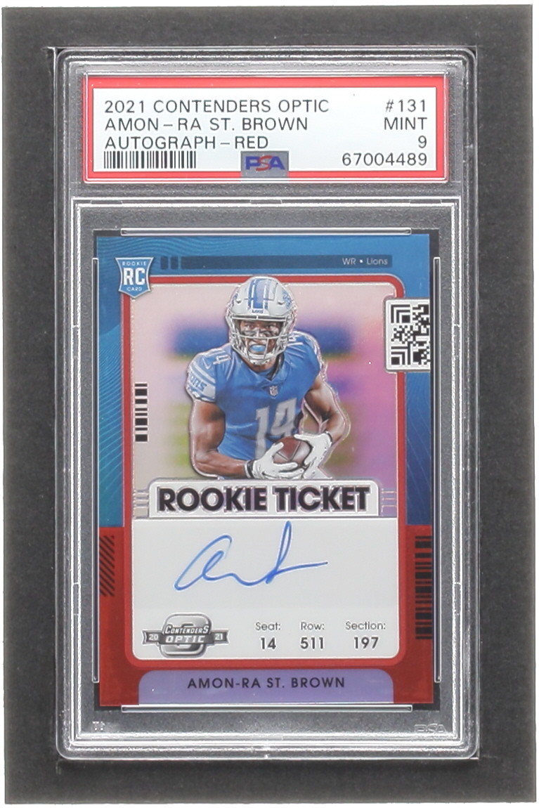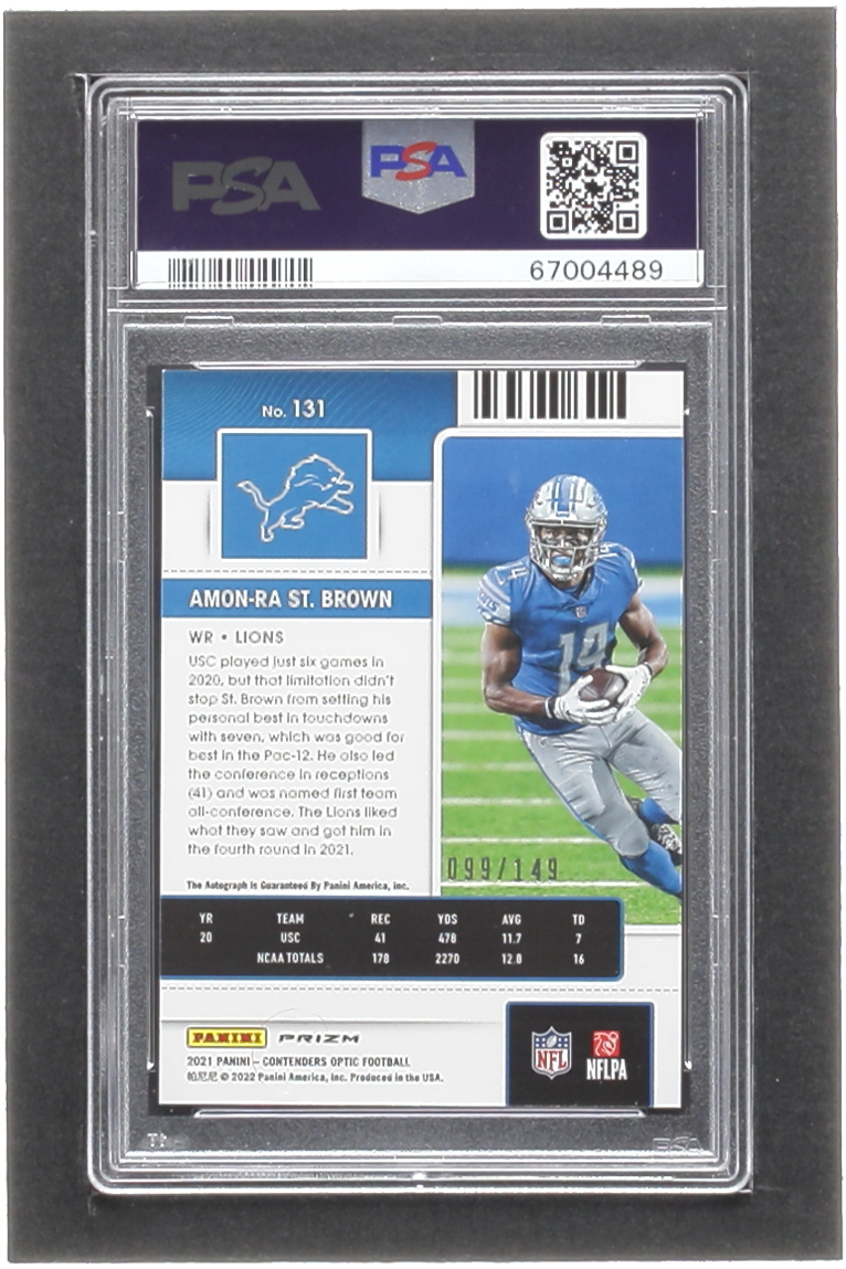 Amon-Ra St. Brown 2021 Panini Contenders Optic Red #131 Autograph #099/149 RC (PSA 9)